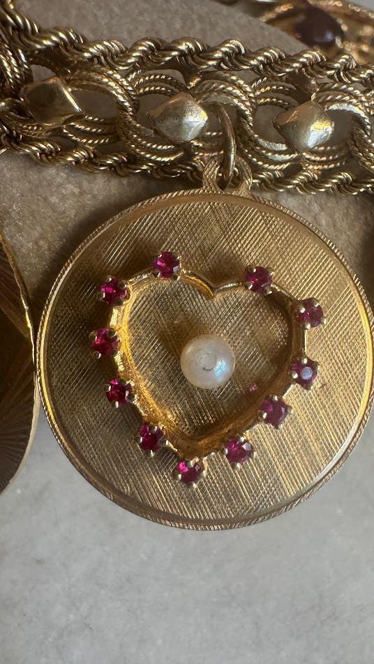 You have my heart! Especially with this beauty. Gold Charm with Rubies and Pearl.