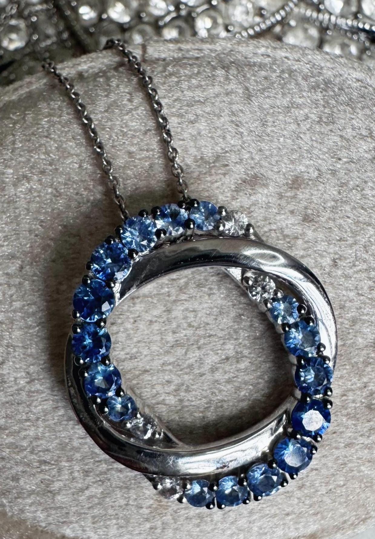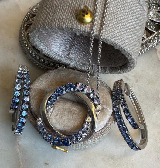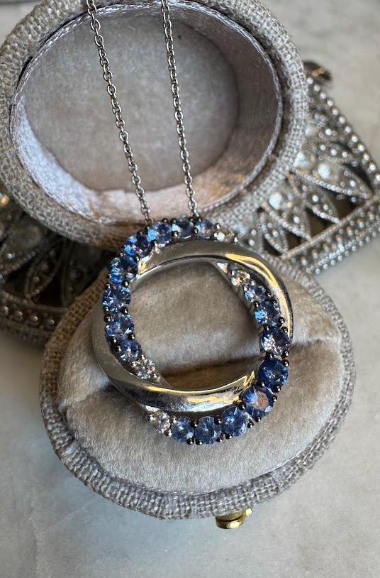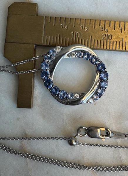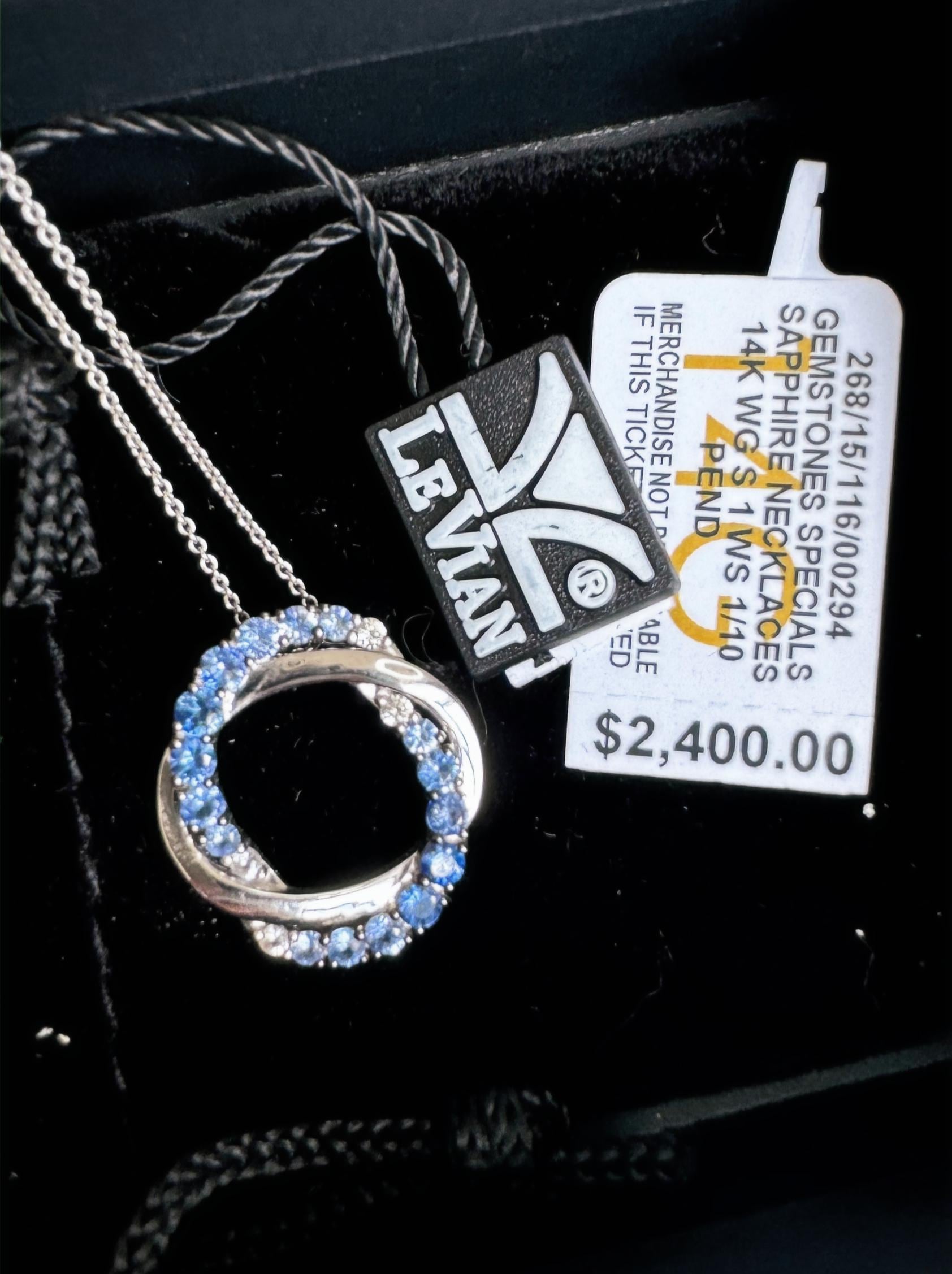 14 kt White GoldBlueberry Sapphires 1 carat Vanilla Sapphires 1/10 caratCable link chain 20in adjustable Lobster claw clasp4.95 gramsNew Le Vian DesignerBox shown not included