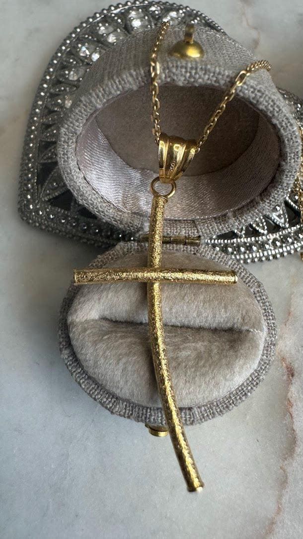 18kt Yellow Gold Cross Pendant Link Chain 18in lengthSpring ring clasp3.00 gramsLike New Condition Excellent-purchased in MaltaBox shown not included, Nicely packaged with 100% recycled material