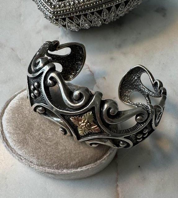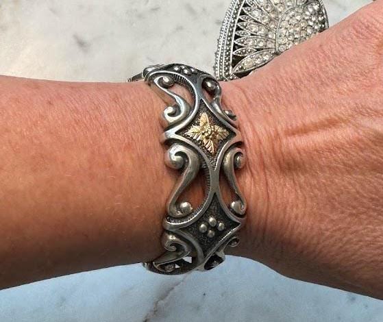 Sterling .925Marked OCC gold platedCuff bracelet slide-on41 gramsVintage Pre-owned Condition good with minor surface wearBox shown not included, Beautifully packaged with 100% recycled materials