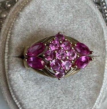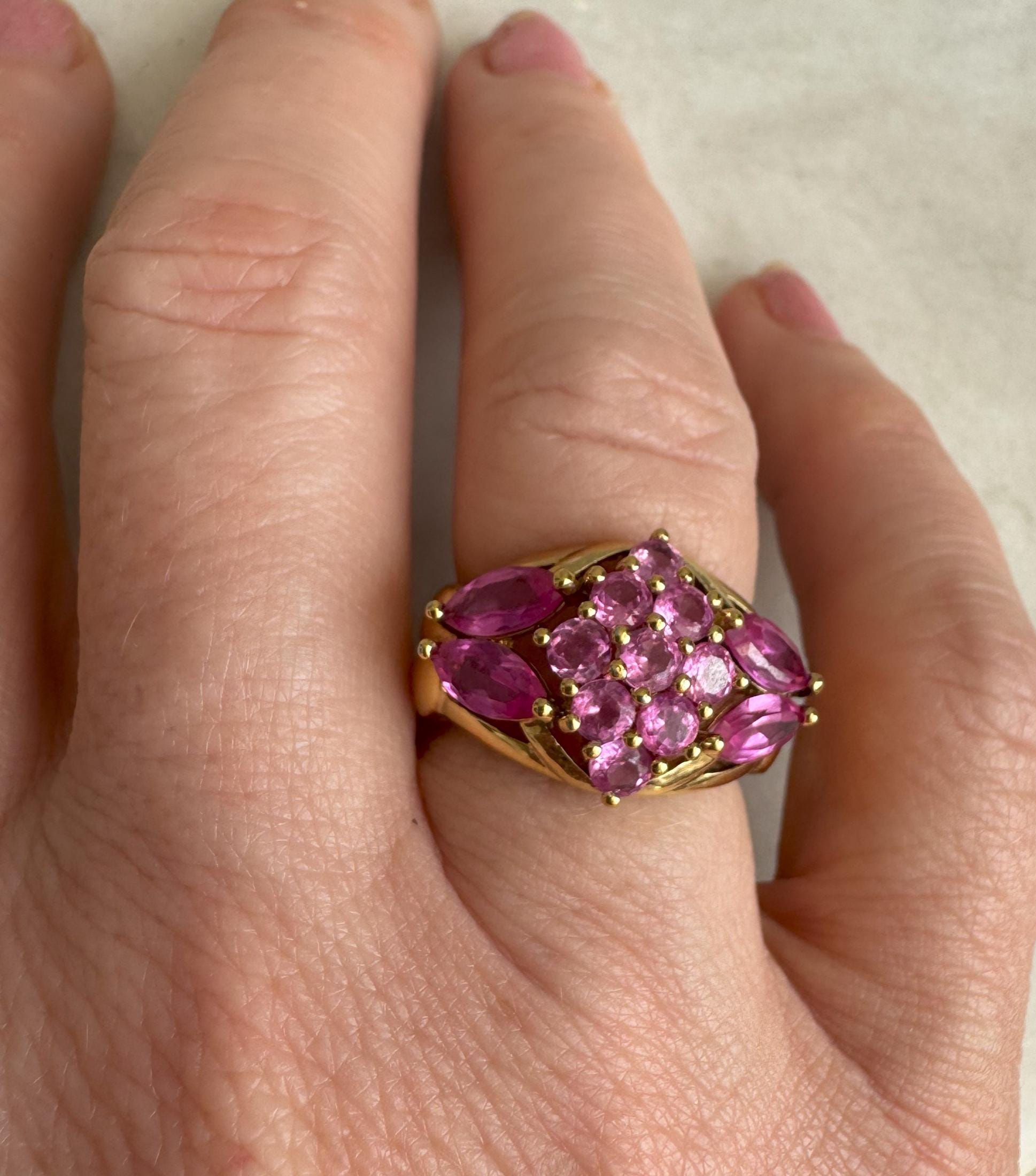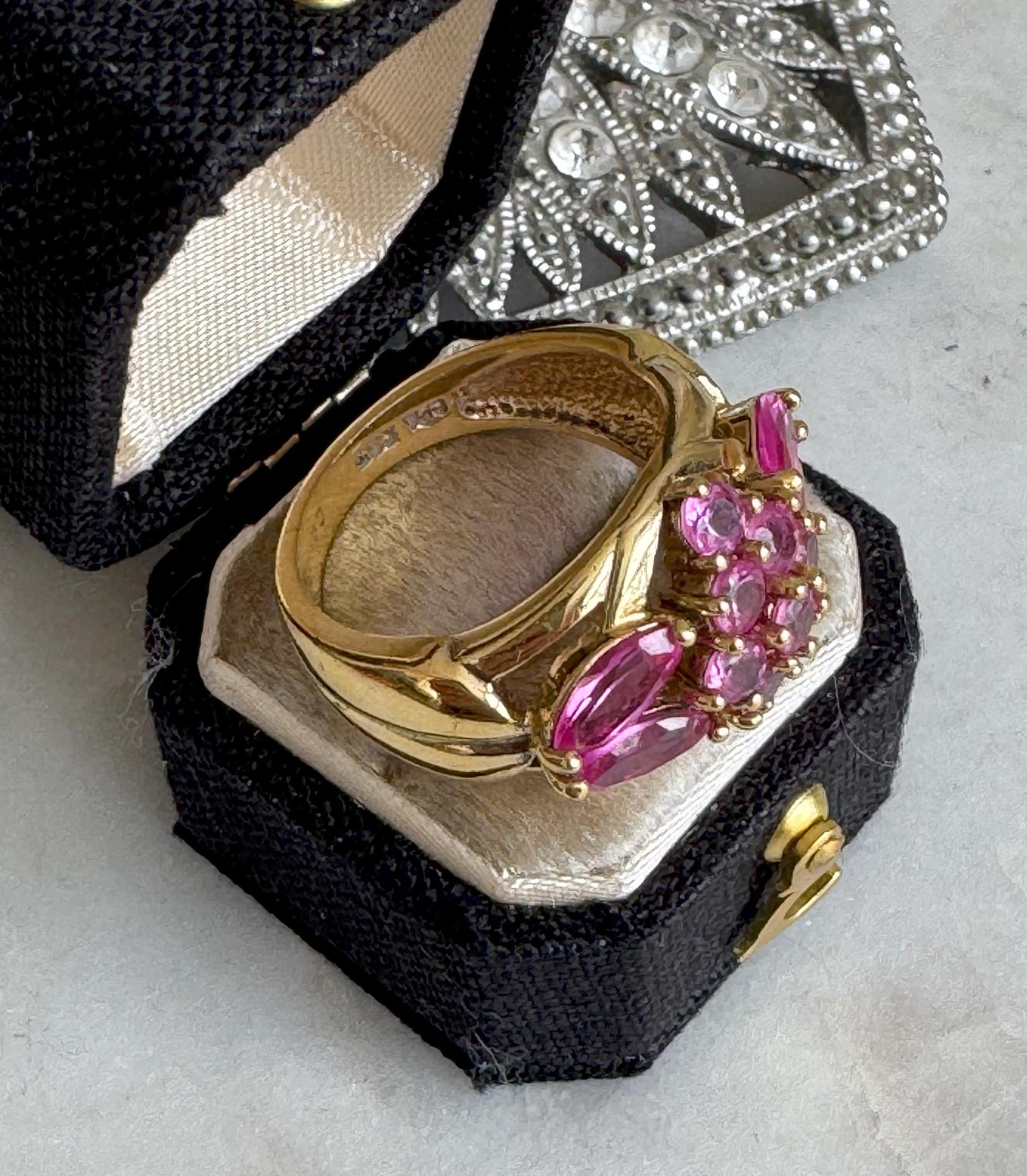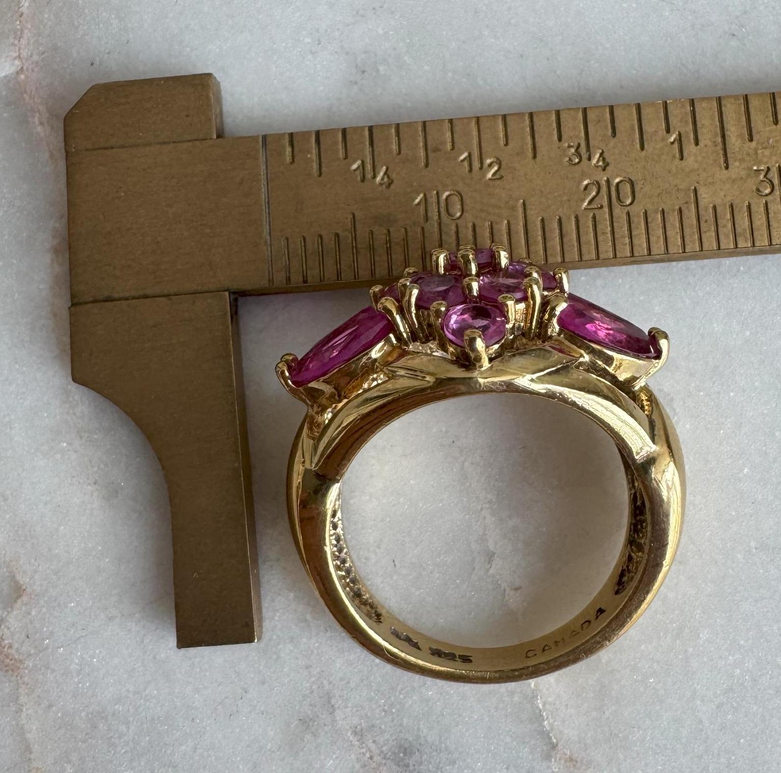 Sterling .925 gold (vermeil)Synthetic Sapphire Center StonesSize 65.72 gramsVintage Pre-owned Condition good with minor surface wearMarked CanadaBox shown not included, Nicely packaged with 100% recycled material