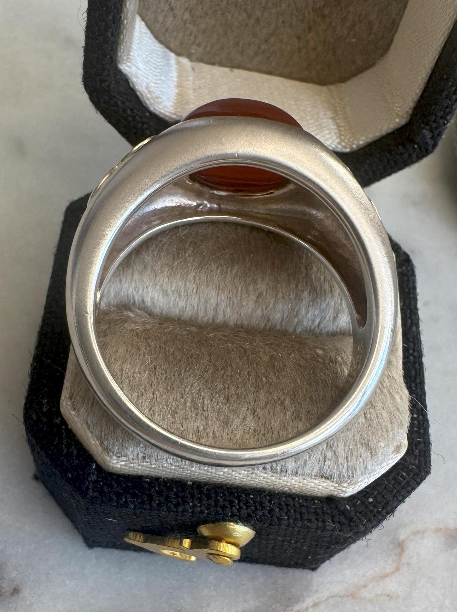 Sterling .925Cornelian Agate CenterSize 7.55.56 gramsPre-owned Condition excellent with minor surface wearBox shown not included, Beautifully packaged with 100% recycled material
