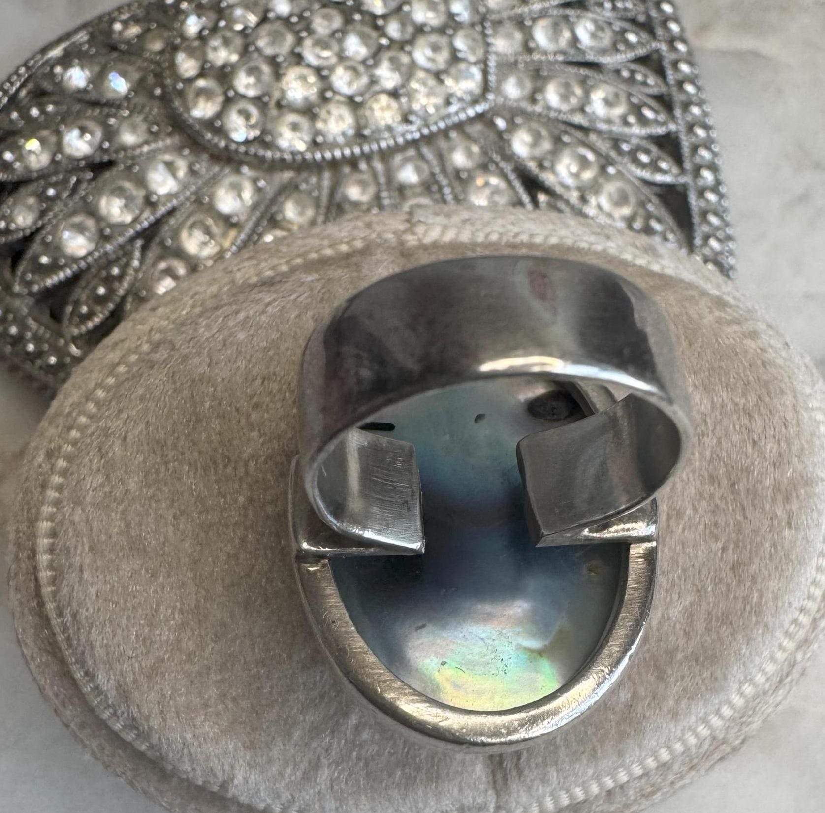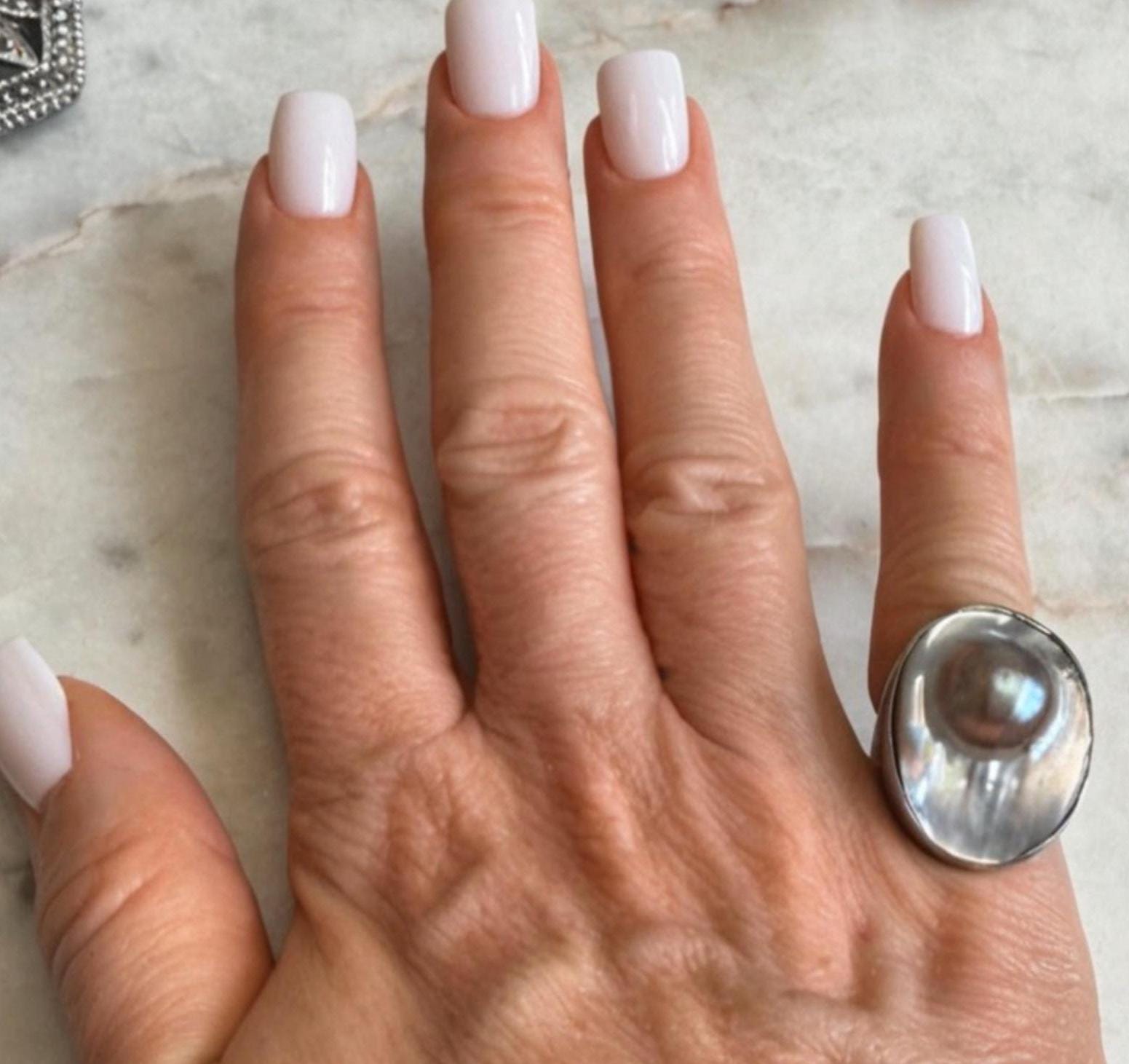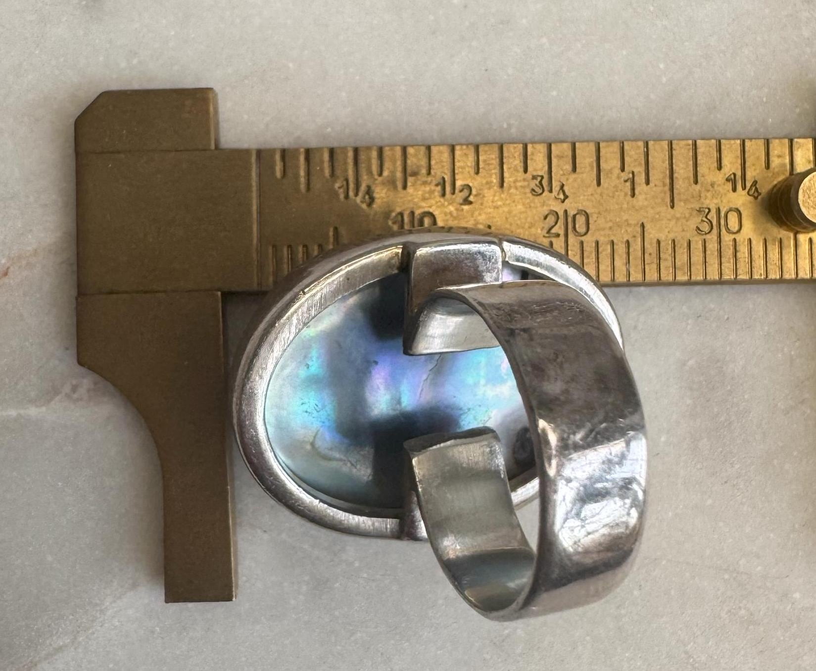Sterling .925Mabe Pearl CenterSize 4.58.34 gramsPre-owned Condition excellent with minor surface wearBox shown not included, Beautifully packaged with 100% recycled material