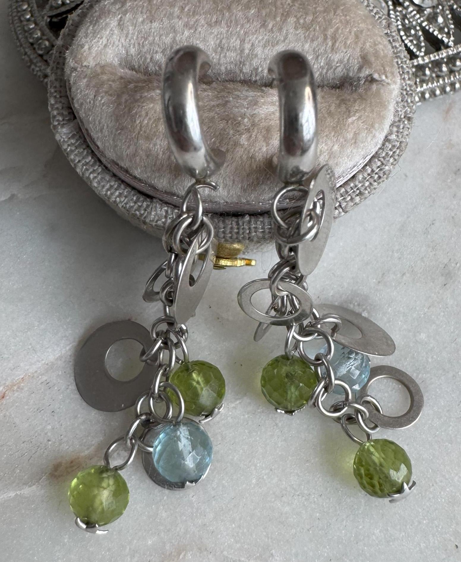 14 kt White Gold Peridot & Blue Topaz StonesPost pierced earrings 5.42 gramsPre-ownedCondition like newBox shown not included, Beautifully packaged with 100% recycled material