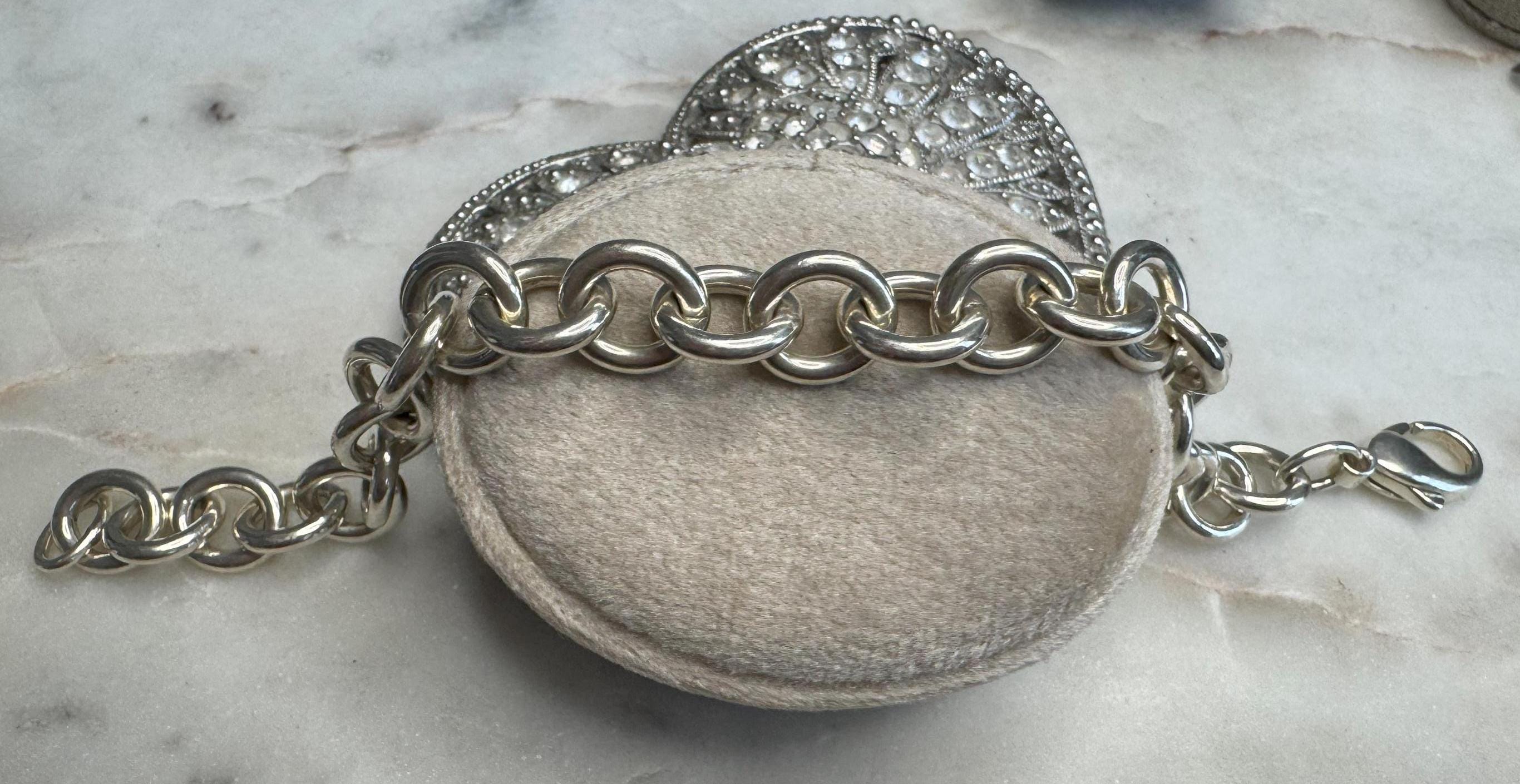 Sterling .925Rolo Link Bracelet (Tiffany-authenticated but not marked) 7inLobster claw clasp27.33 gramsPre-owned Condition excellent with minor surface wearBox shown not included, Beautifully packaged with 100% recycled material