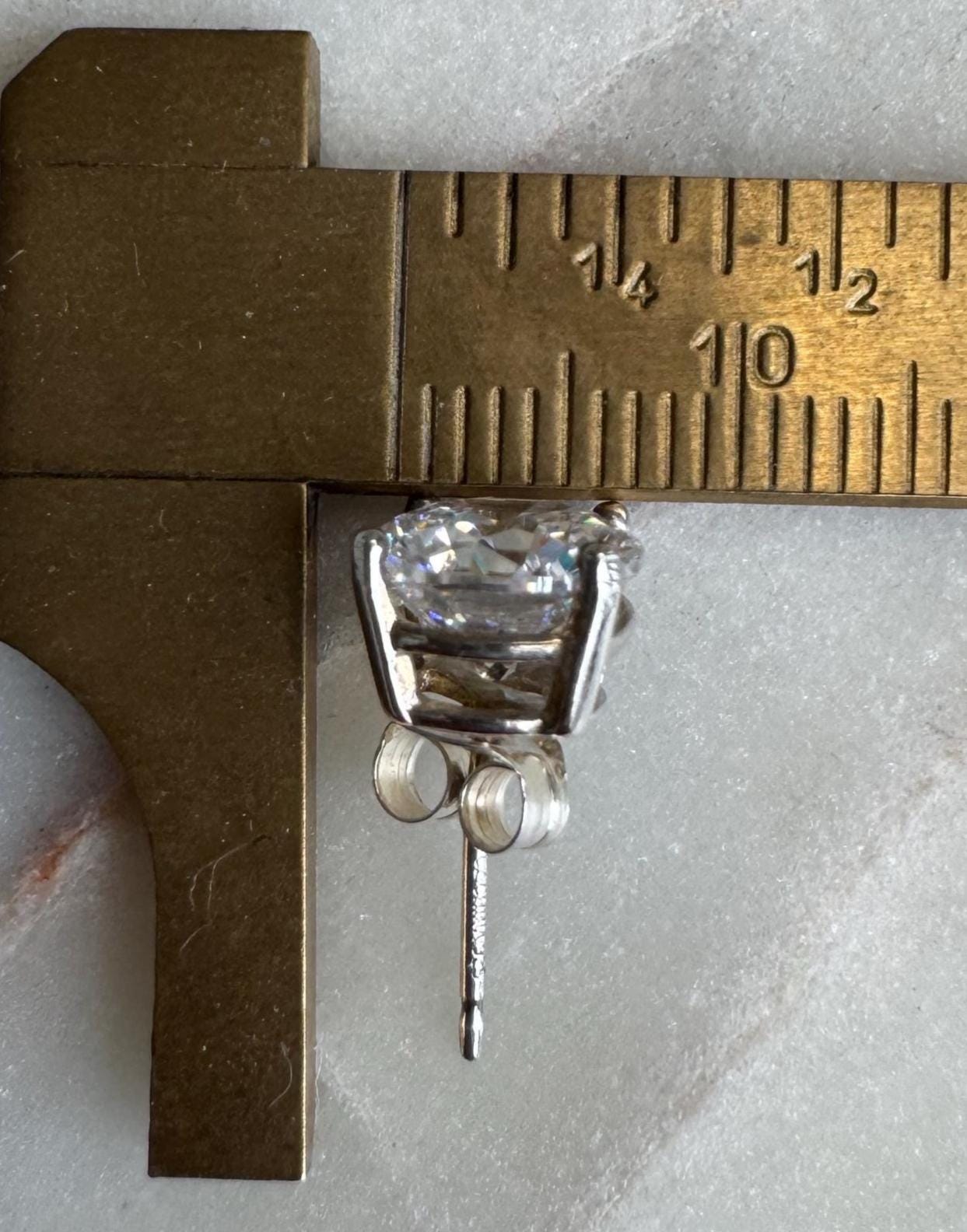 Sterling .925 Cubic Zirconia 2 carat Center StonesPost pierced earring2.47 gramsPre-ownedCondition Excellent with minor surface wearBox shown not included, Beautifully packaged with 100% recycled material