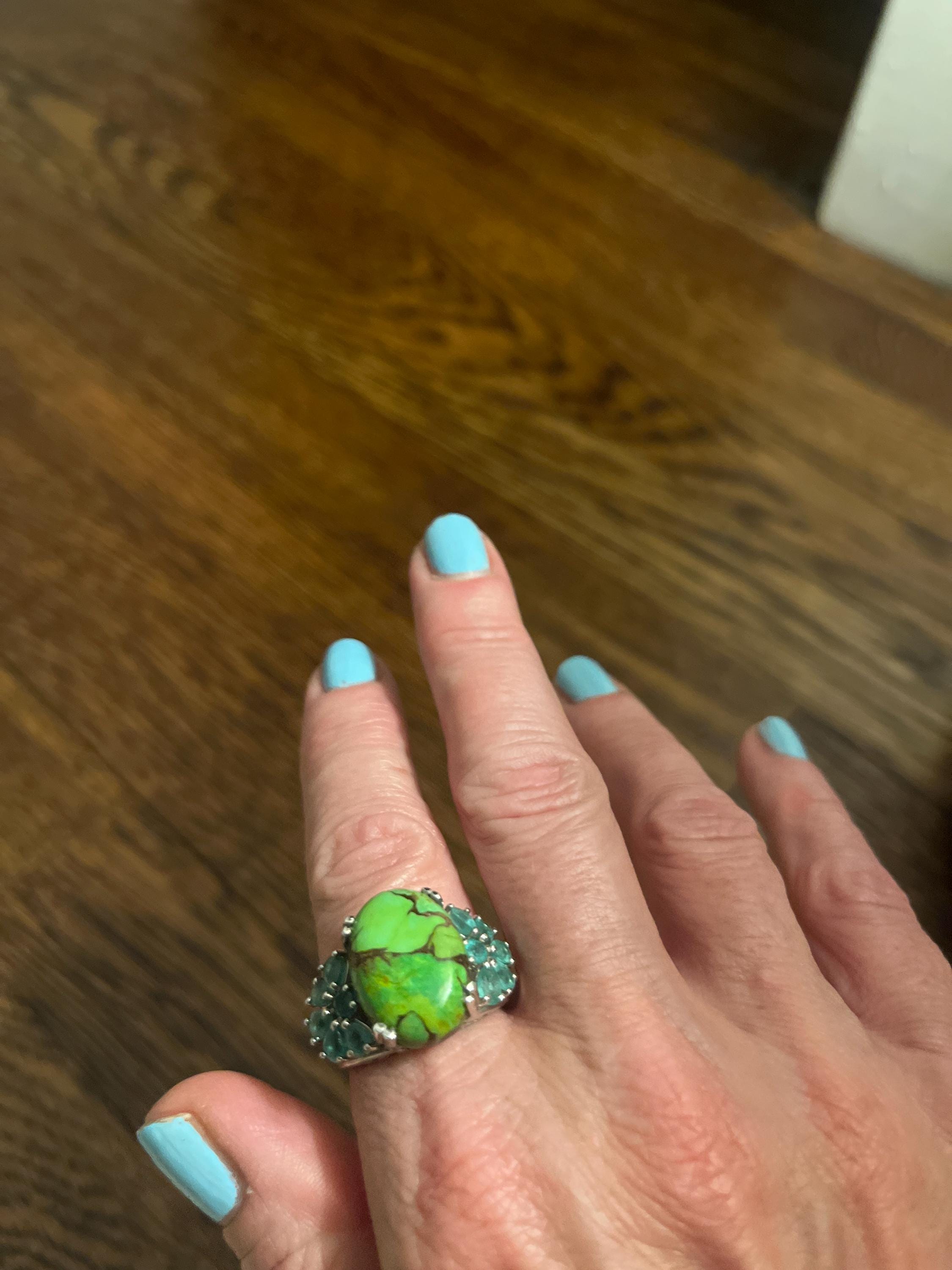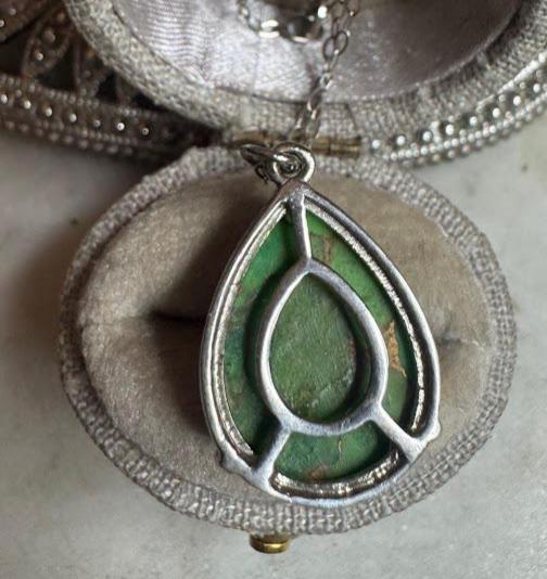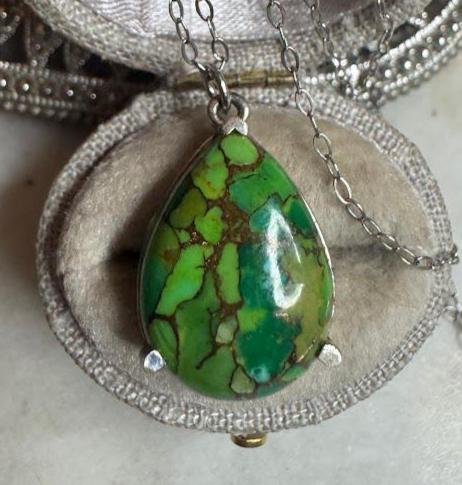 Sterling .925Pear Shaped Copper Turquoise Center StoneChain Link 20inSpring ring clasp9.40 GramsVintage Pre-owned Condition good with minor surface scratchesBox shown not included