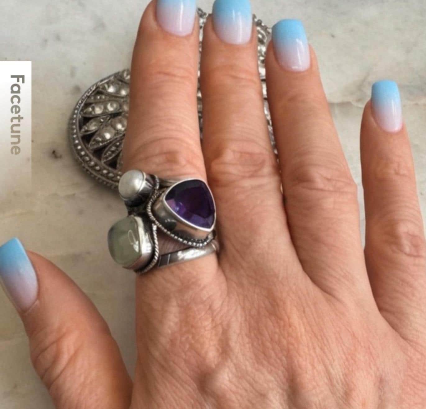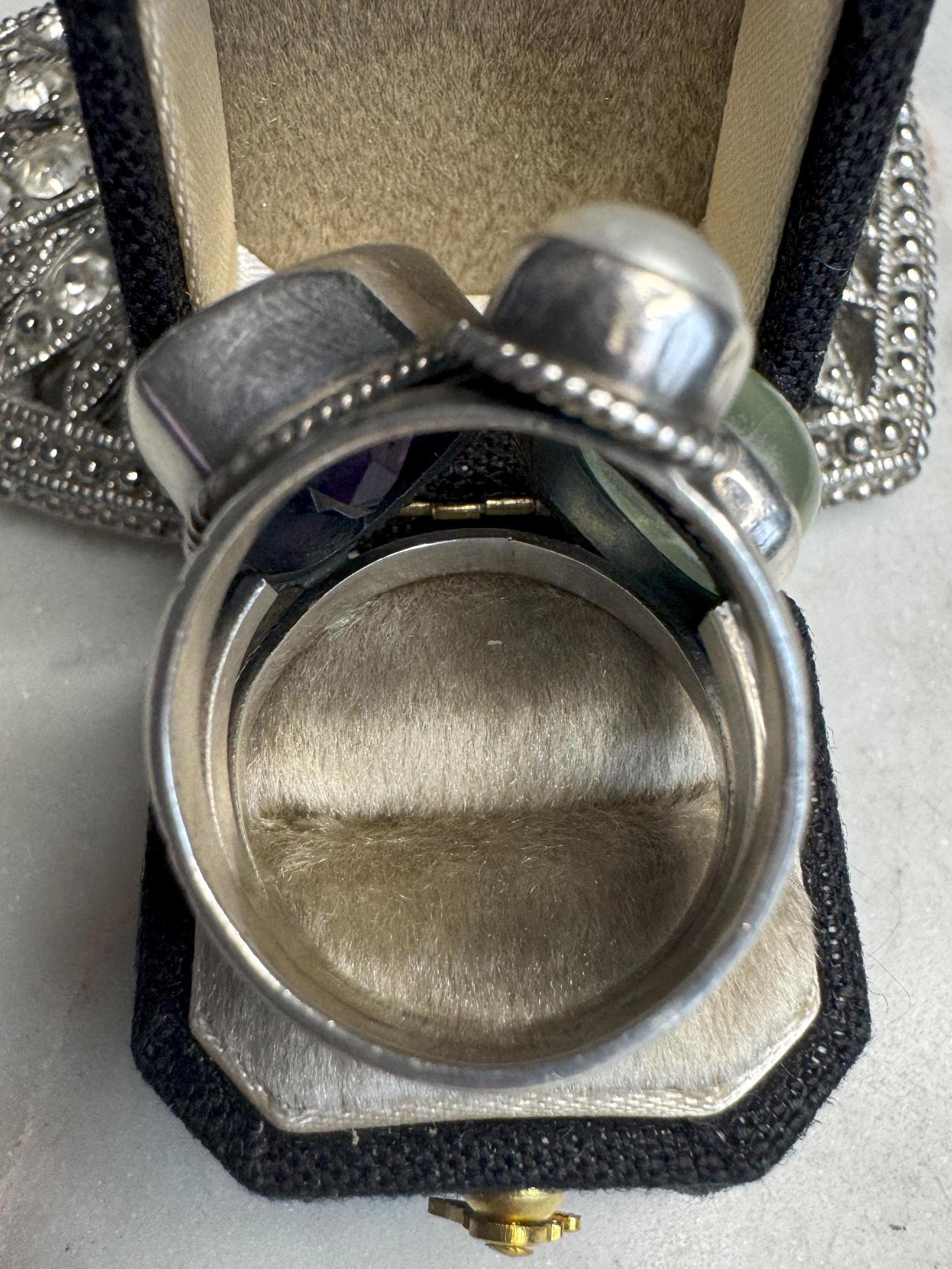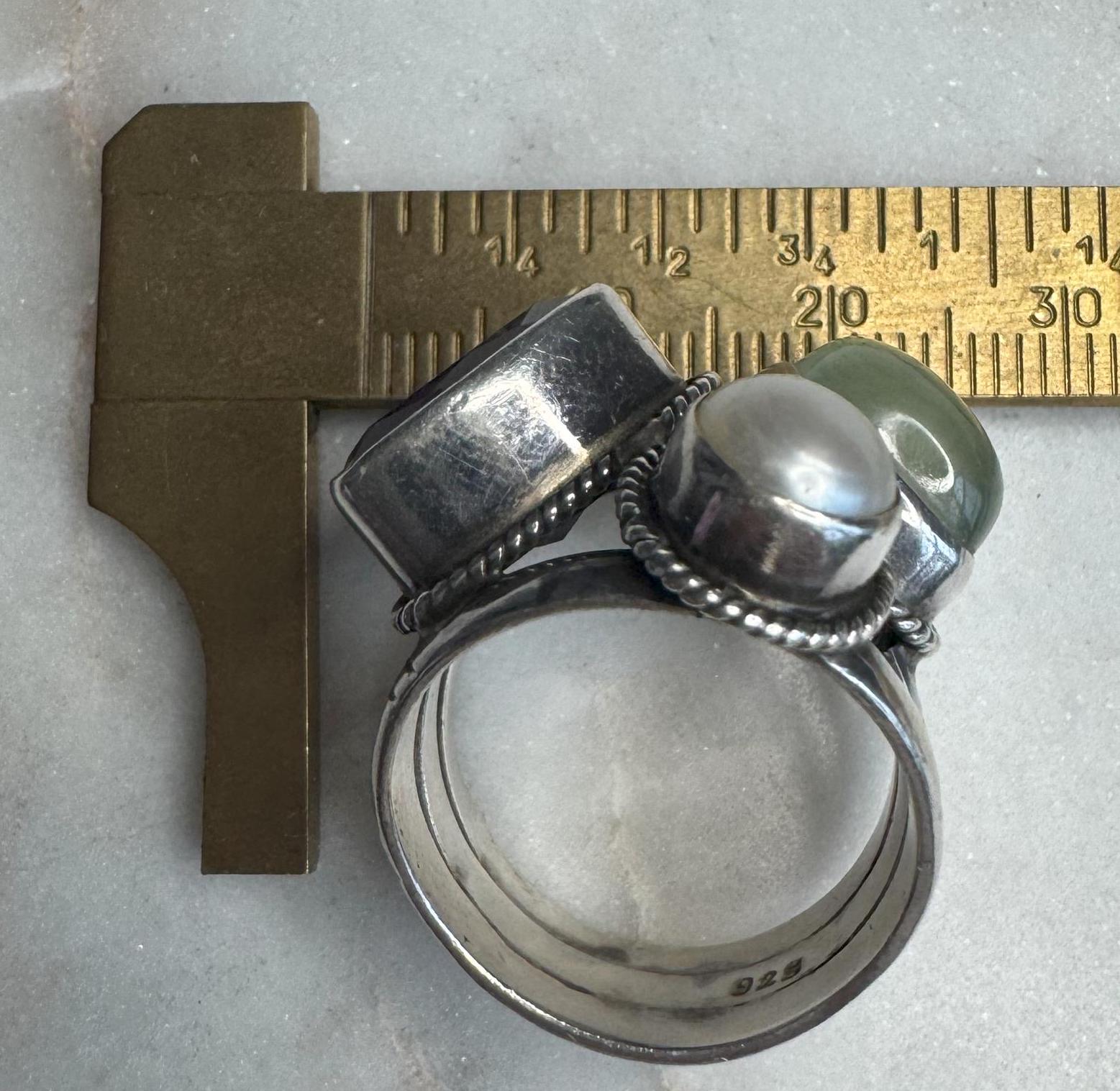 Sterling .925 Multi Gemstone Moonstone Amethyst PearlSize 7.511.36 gramsVintage Pre-owned Condition good with minor surface scratchesBox shown not included, Nicely packaged with 100% recycled material