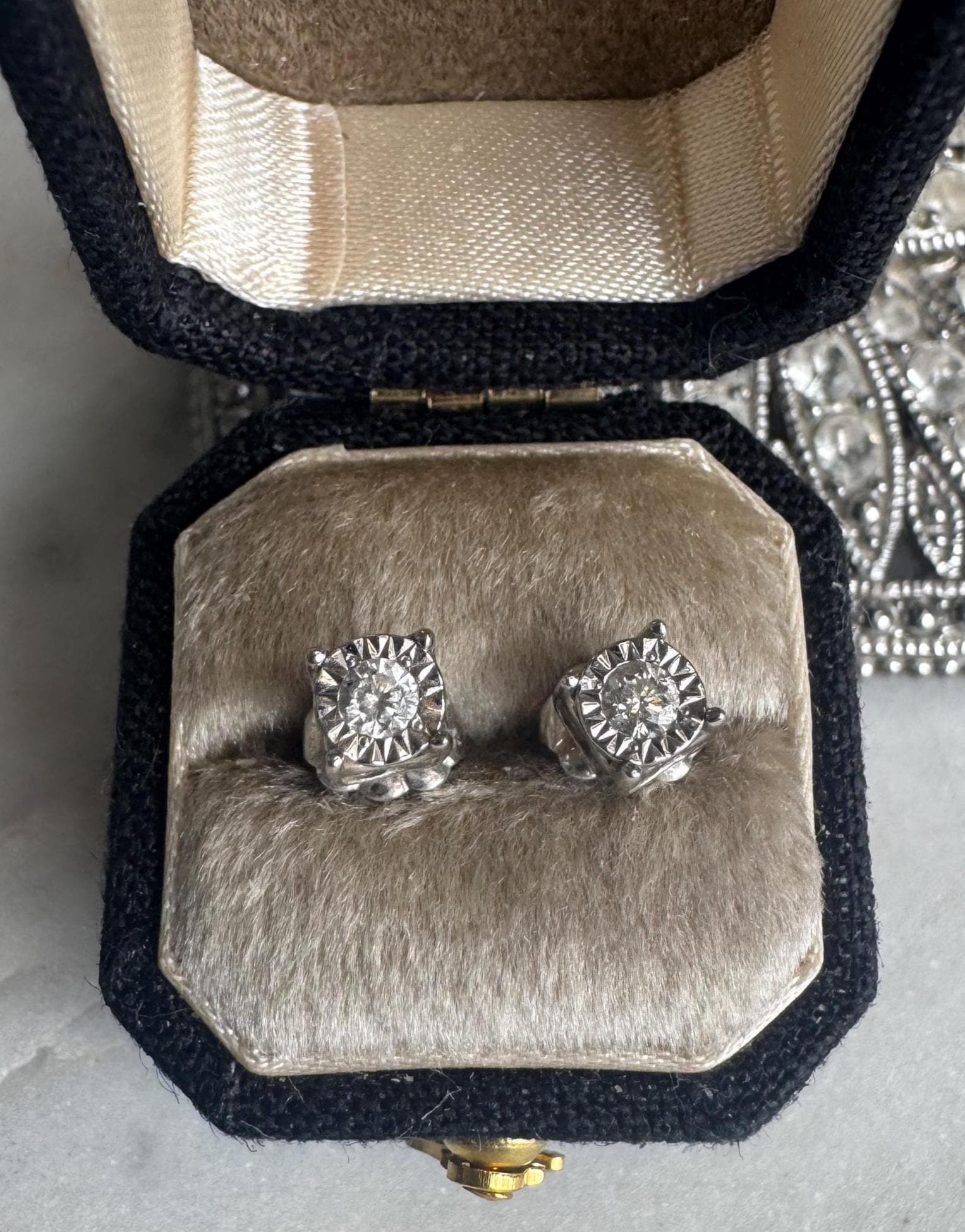 14 kt White Gold Half Carat Round Diamond I2 Clarity G-J colorPost pierced earrings1.38 gramsCondition NewTrue Miracle Designer