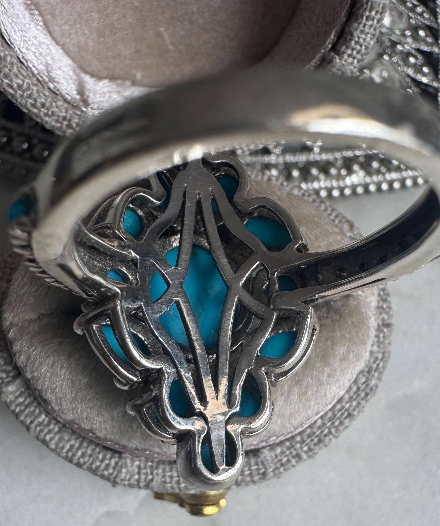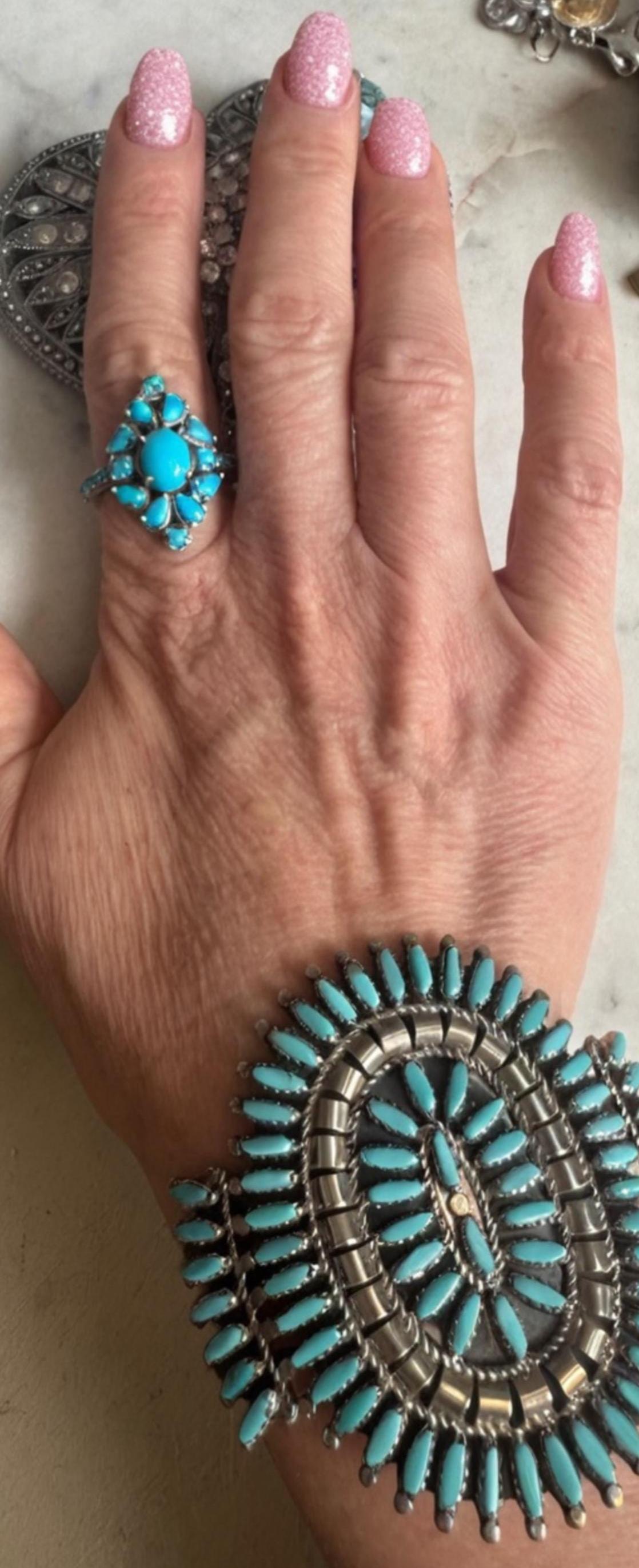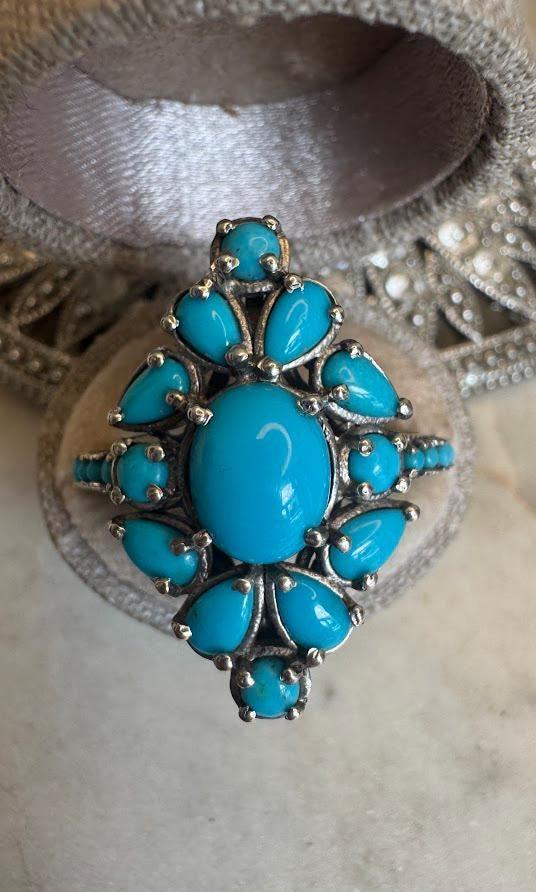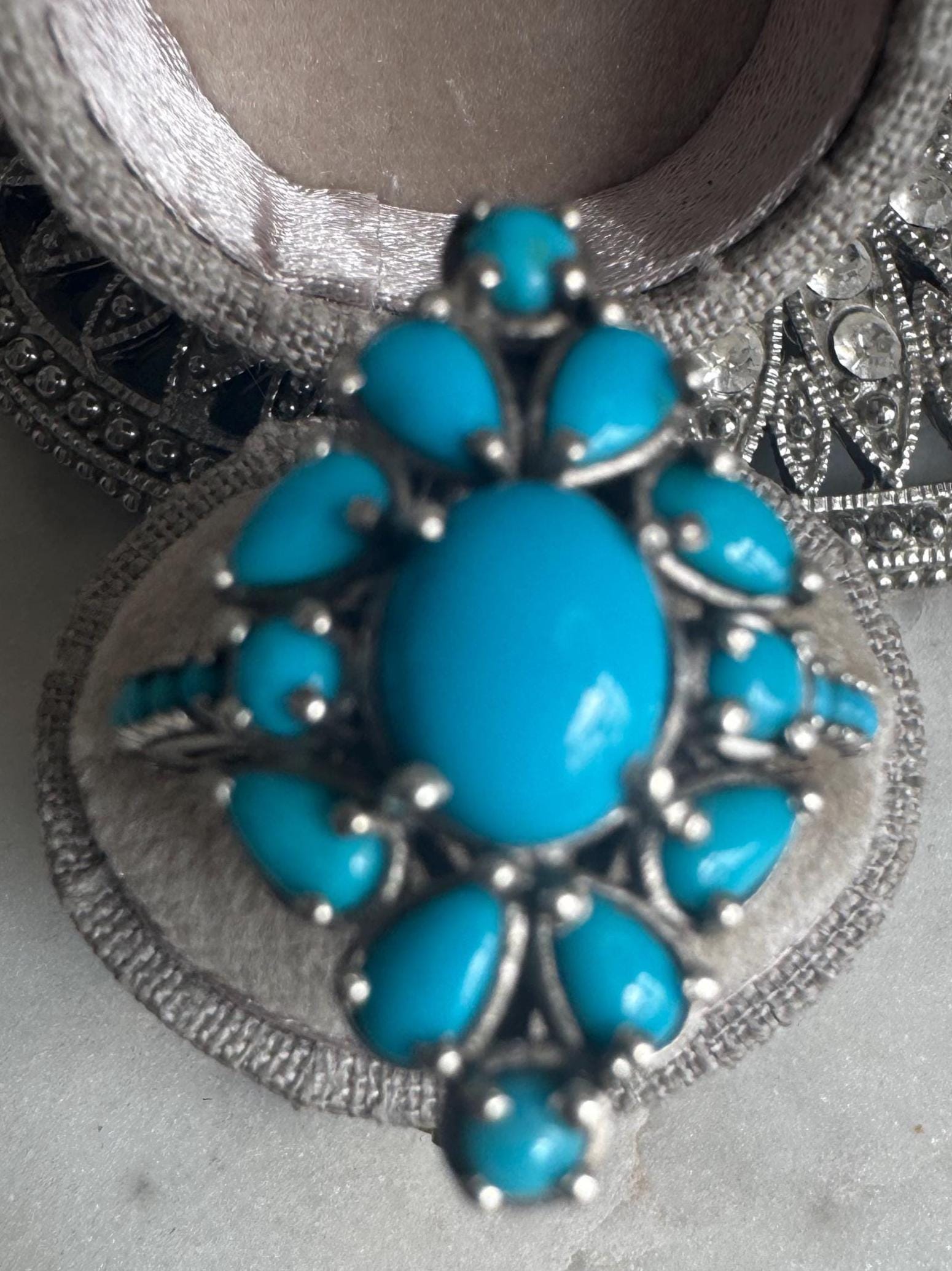 Sterling .925 Sleeping Beauty Center StoneSize 7.55.23 gramsPre-ownedCondition like newBox shown not included, Nicely packaged with 100% recycled material
