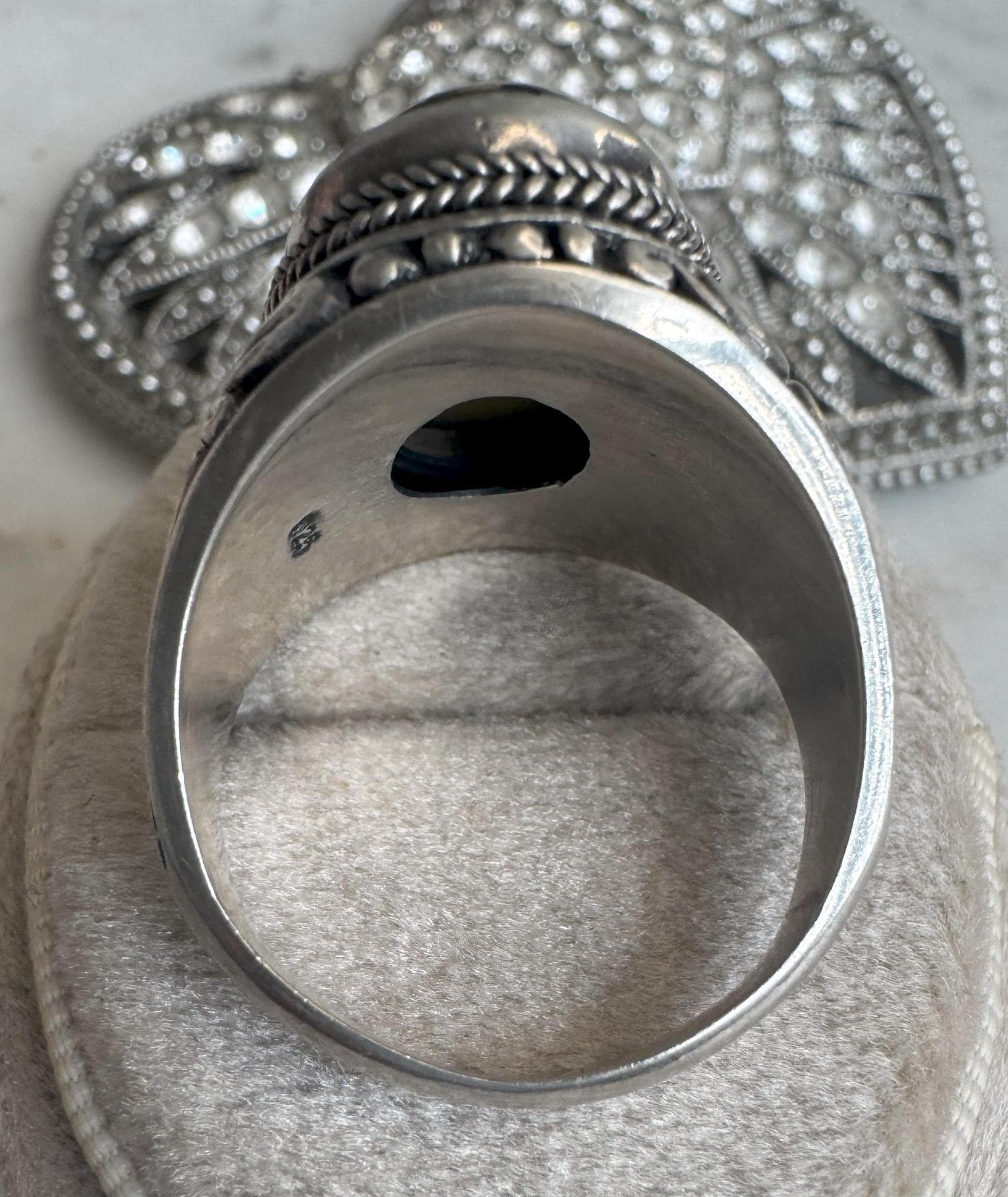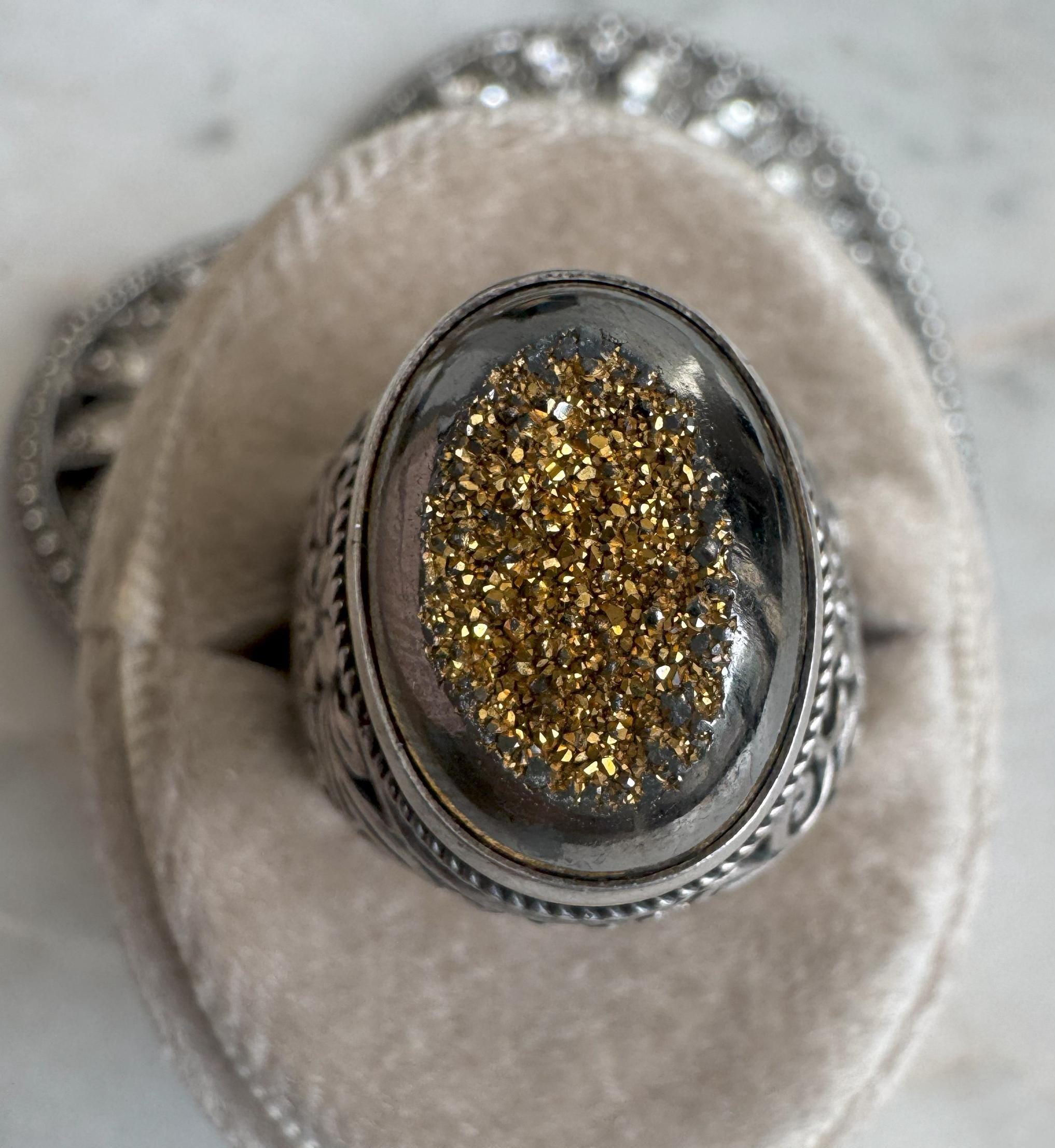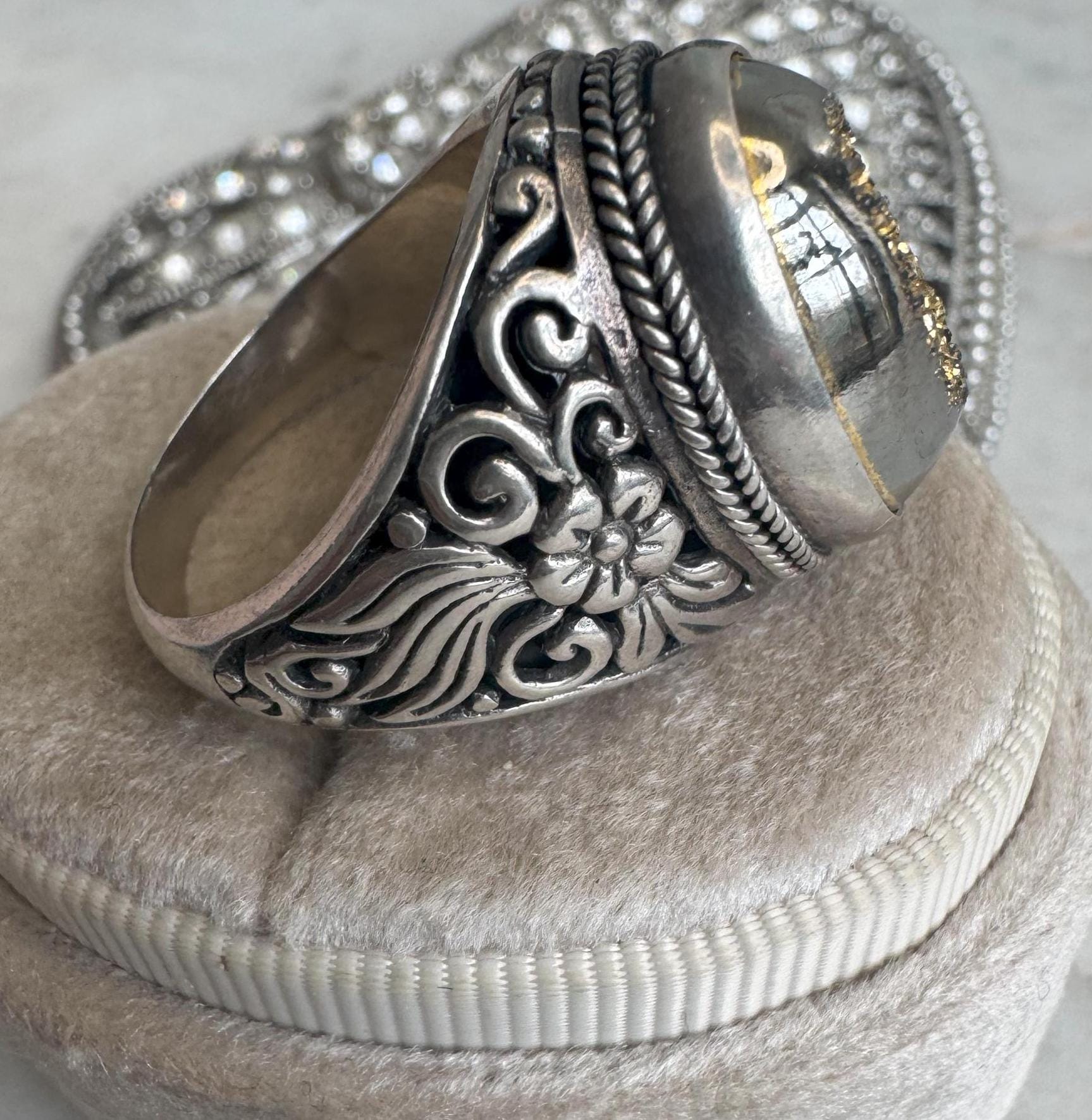 Sterling .925Gold Dust Quartz CenterSize 109.81 gramsVintage Pre-owned Condition excellent with minor surface wearBox shown not included, Beautifully packaged with 100% recycled material