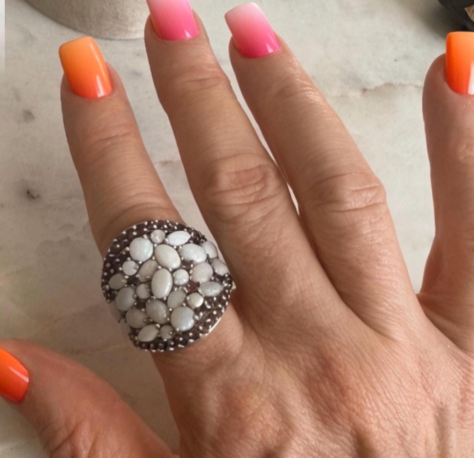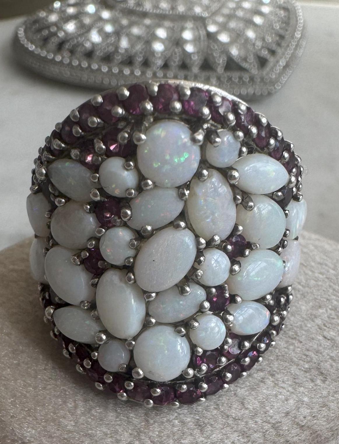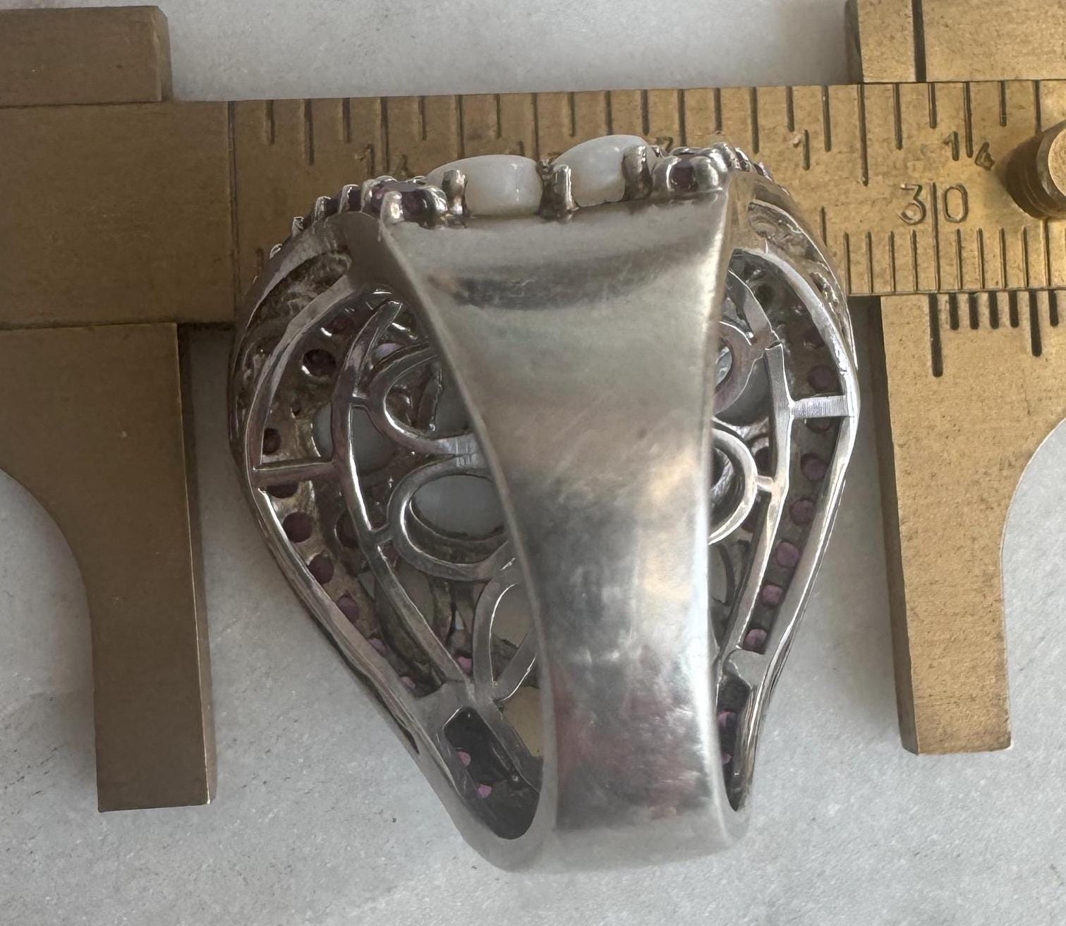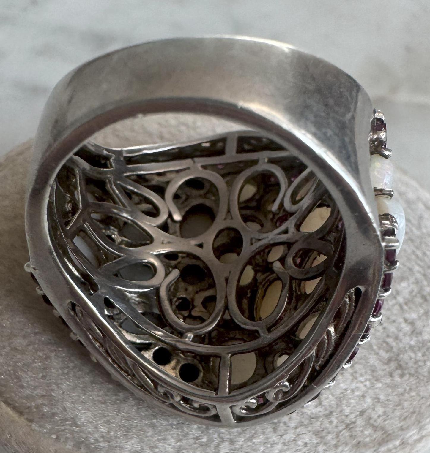 Sterling .925Natural Opal Center Stone & Pink Accent (Ruby) StonesSize 812.40 gramsVintage Pre-ownedCondition good with minor surface wearBox shown not included, Beautifully packaged with 100% recycled material