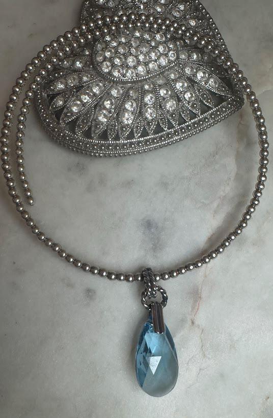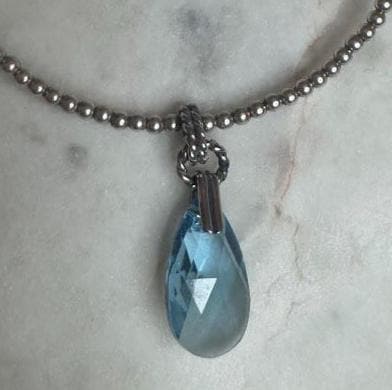 Sterling .925 Blue Crystal Glass Center StoneNo clasp, Tension Chain15.10 gramsVintage, Pre-owned Condition good with minor surface scratchesBox shown not included, Beautifully packaged