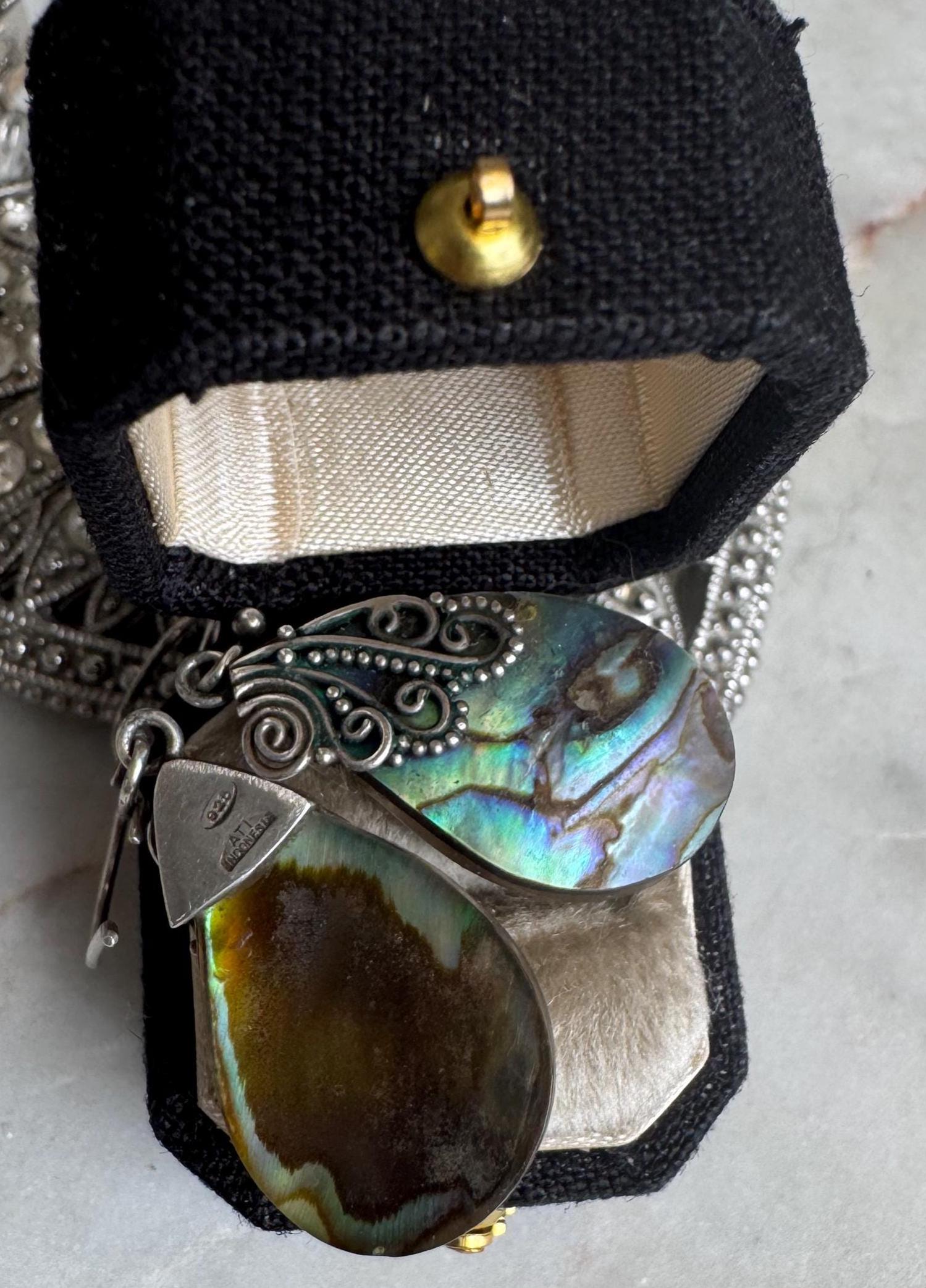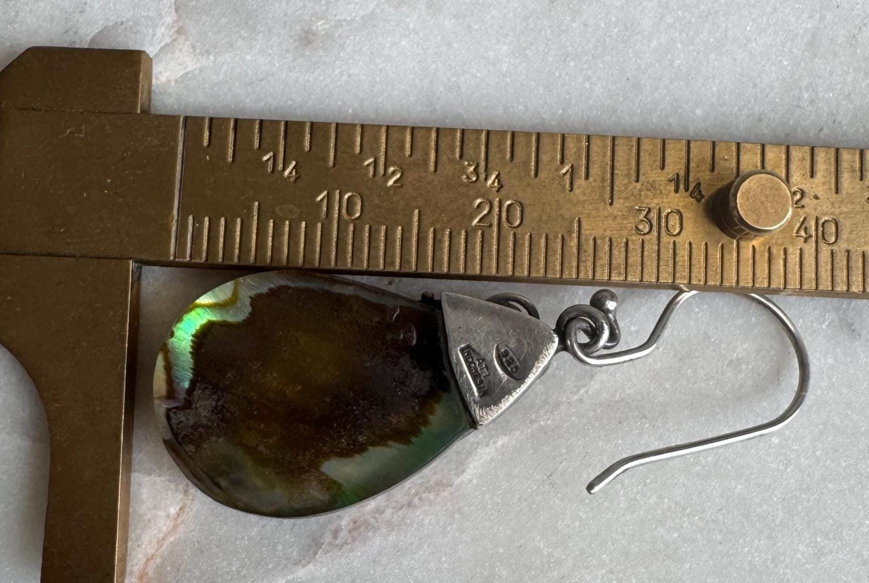 Sterling .925Abalone Center stone Fish hook pierced earring4.44 gramsVintage Pre-ownedCondition Excellent with minor surface scratchesDesigner Marked ATI Indonesia