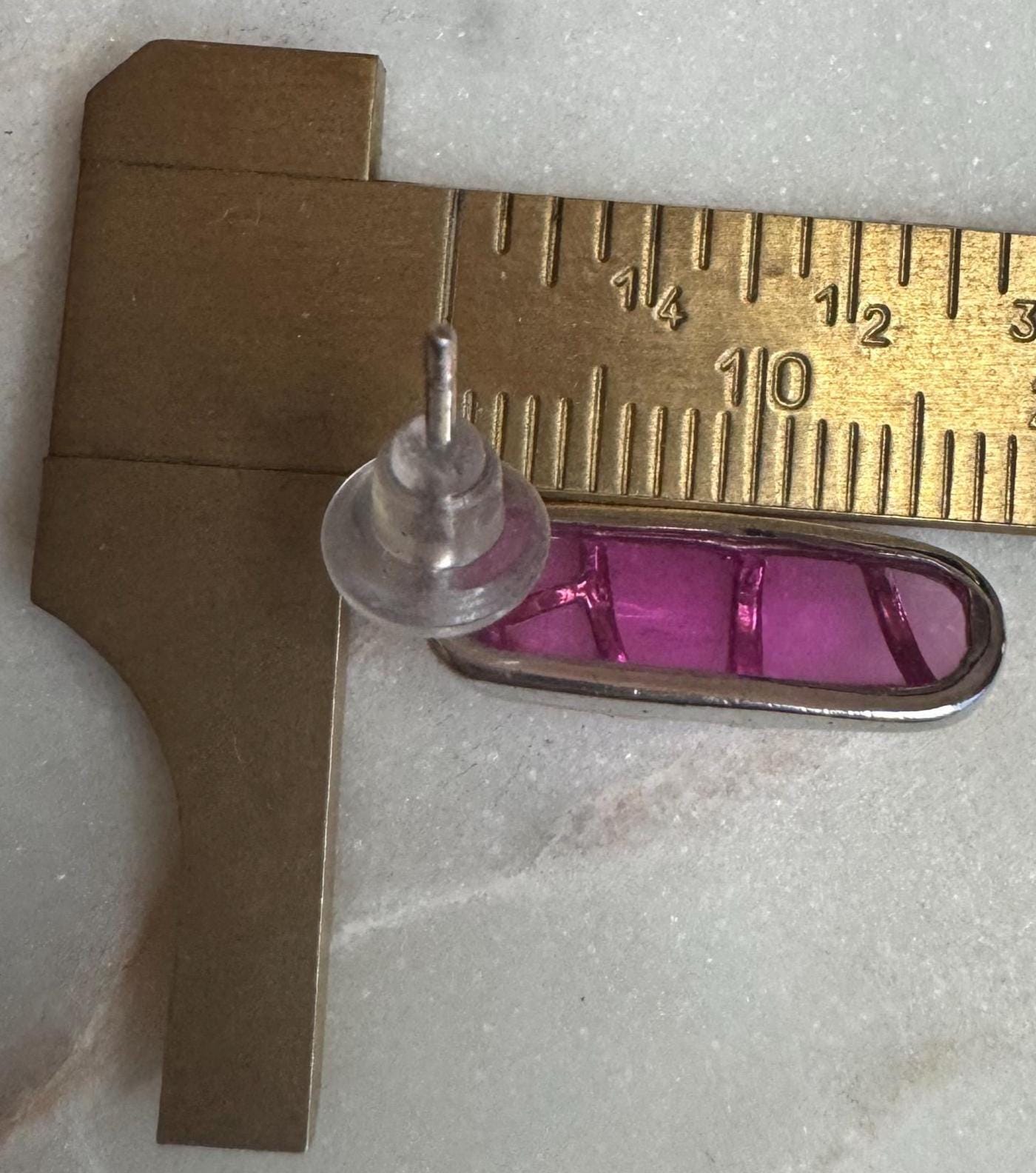 Sterling .925 Hot Pink Glass Center StonePost pierced earrings2.25 gramsPre-owned Condition excellent with minor surface wearBox shown not included, Beautifully packaged with 100% recycled material