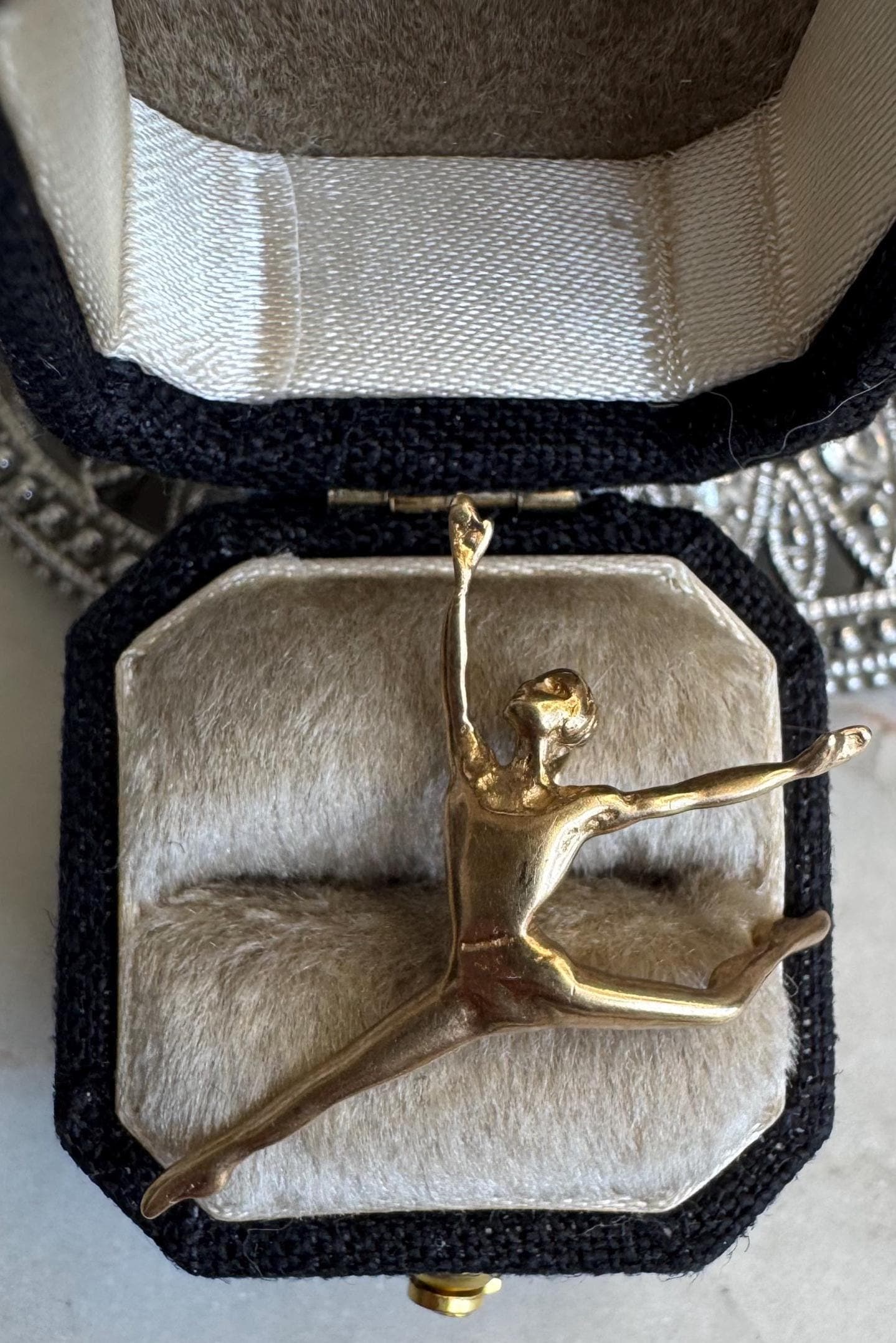 14 kt Yellow GoldBallerina or Gymnast1.81 GramsPre-owned Condition excellent with minor surface wearBox shown not included, Packaged nicely with 100% recycled material