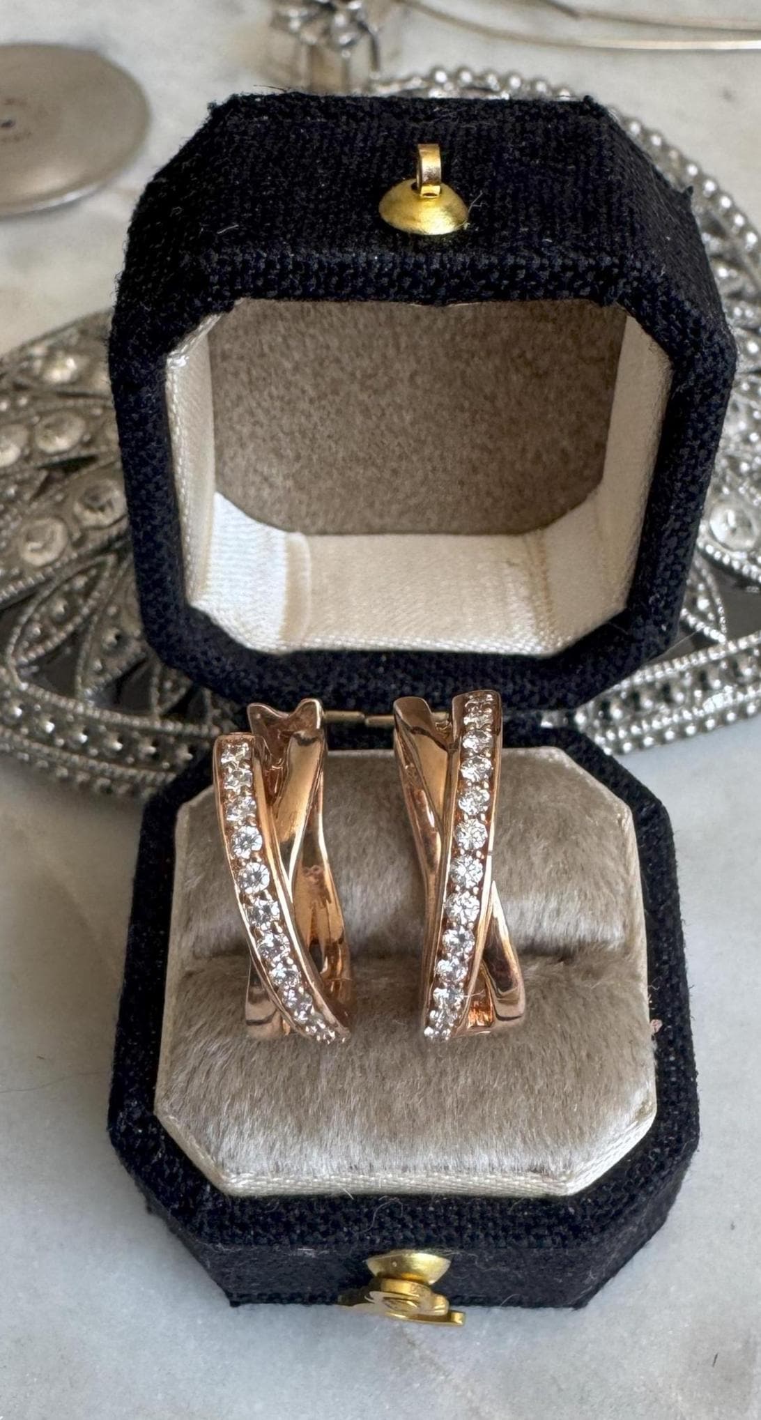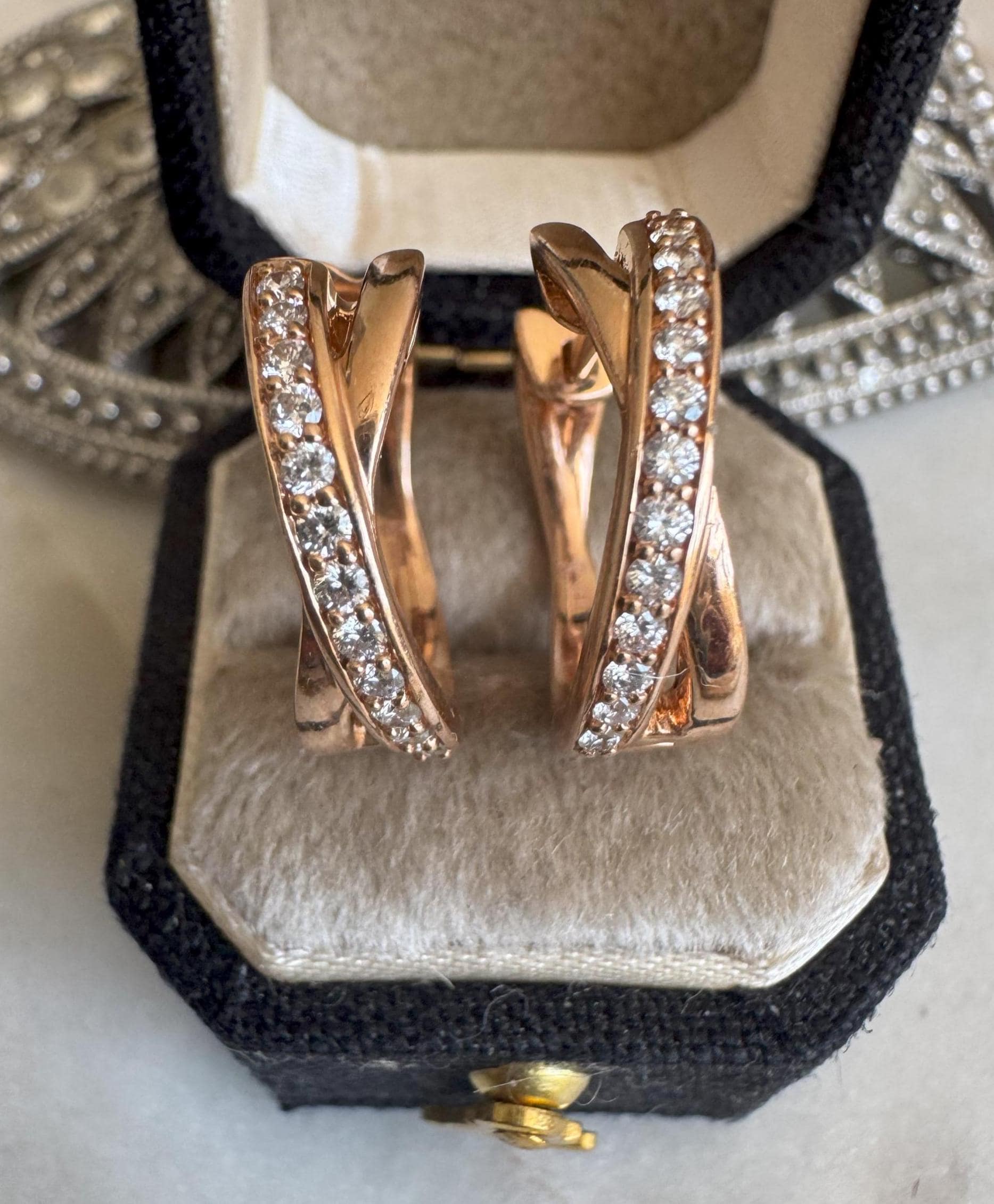 14 kt Rose GoldDiamond .25 carats VS2 clarity H/I colorLatch back pierced earrings4.73 gramsPre-owned Condition like newBox shown not included, Beautifully packaged