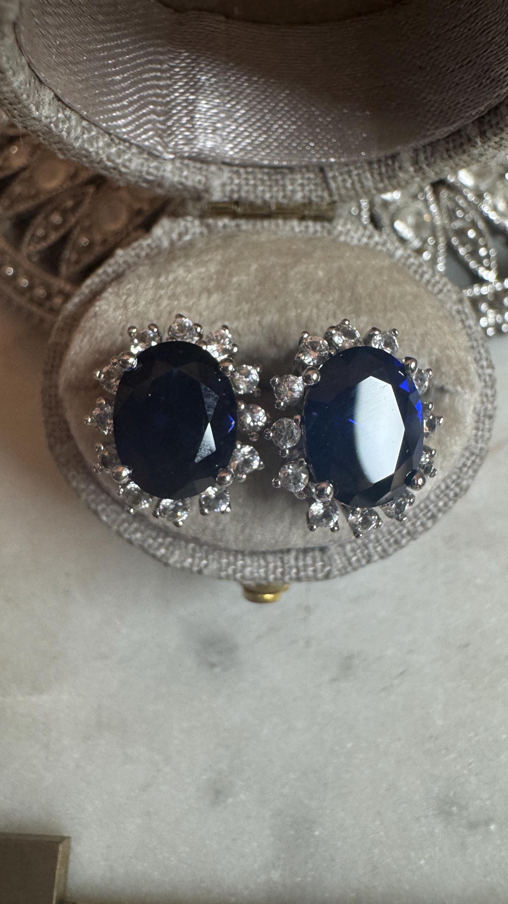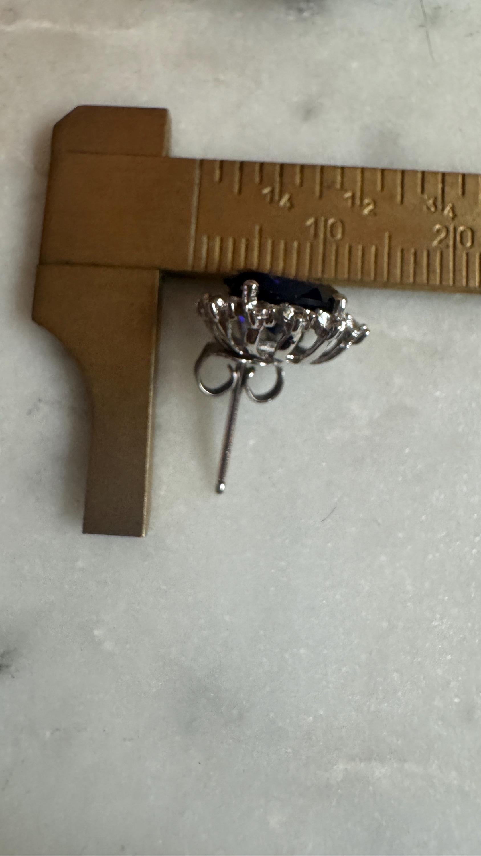 Sterling .925Lab-created Sapphire & White StonesPost pierced earring4 gramsVintage Pre-ownedBox shown not included, Beautifully packaged