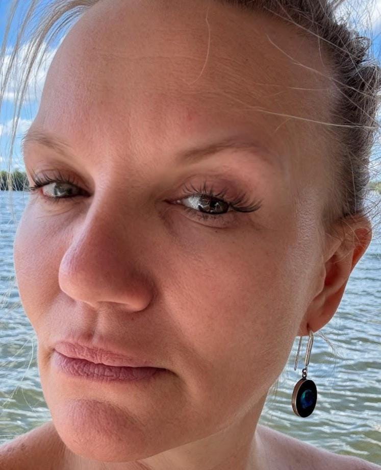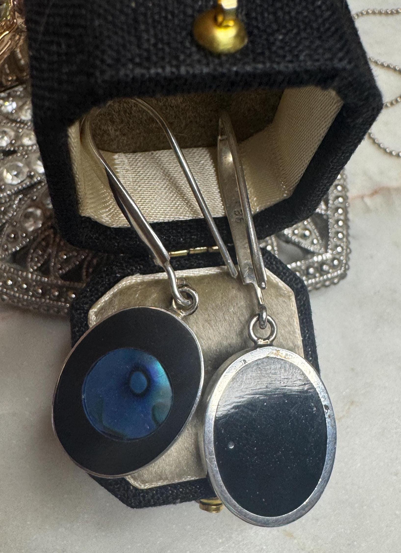 Sterling .925Abalone & Onyx Center Stone Lever back earring5.72 gramsVintage Pre-ownedBox shown not included, Beautifully packaged