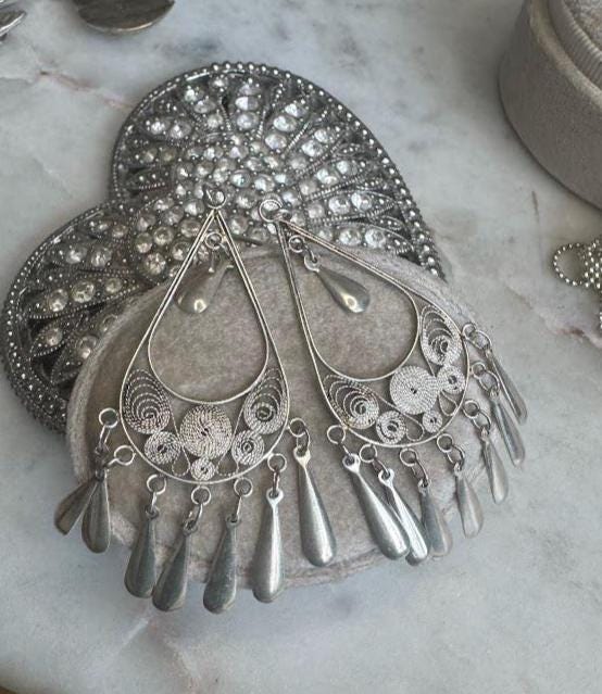 Sterling silver .925Wire Ear4 gramsVintage, PreownedCondition excellent with minor surface scratchesBox shown not included, Beautifully packaged