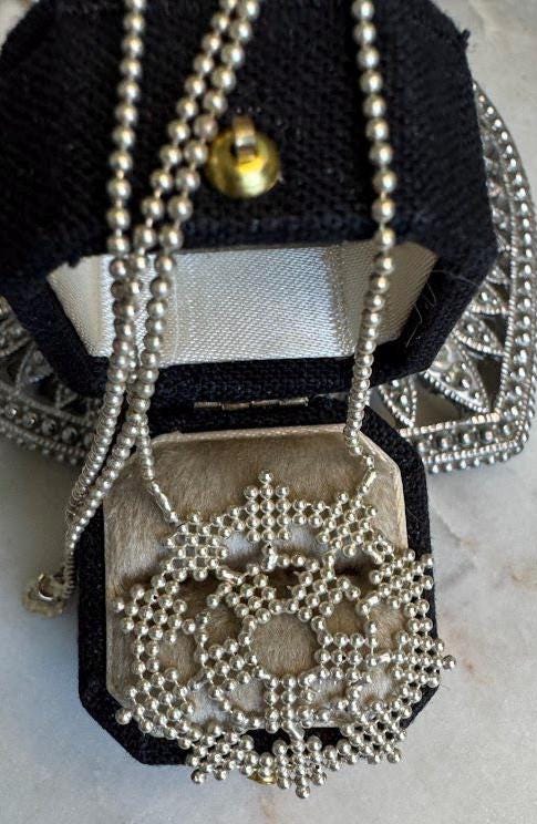 Sterling .925Beaded attached chain 18in lengthspring ring clasp4 gramsVintage, PreownedCondition excellent with minor surface wearBox not included, Beautifully packaged