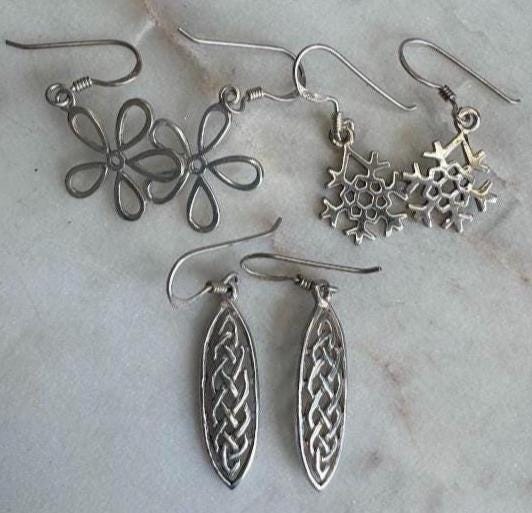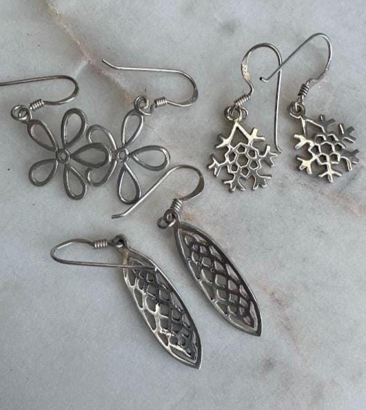Sterling .925 Flower, Snowflake, Modern Design EarringsEar wire earring6.20 gramsVintage Pre-owned Condition Excellent with minor surface scratchesBox shown not included, Beautifully packaged with 100% recycled material