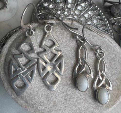 Sterling .925Mother of Pearl Center StoneEar wire4.86 gramsVintage, Pre-ownedCondition good with minor wearBox shown not included, Beautifully packaged with 100% recycled materialDesigner mark