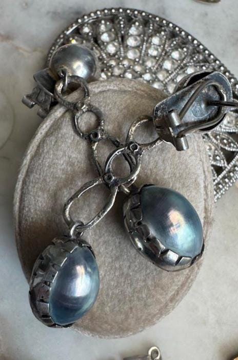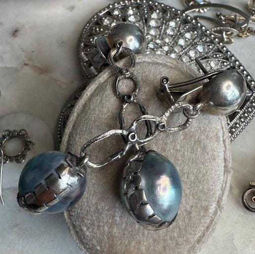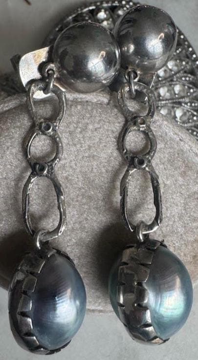 Sterling .925Black Pearl Center StoneOmega closure14.45 gramsVintage, Pre-ownedCondition good with minor wearBox shown not included, Beautifully packagedDesigner mark
