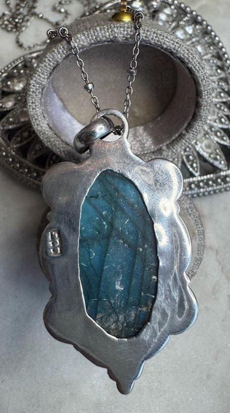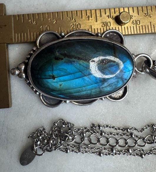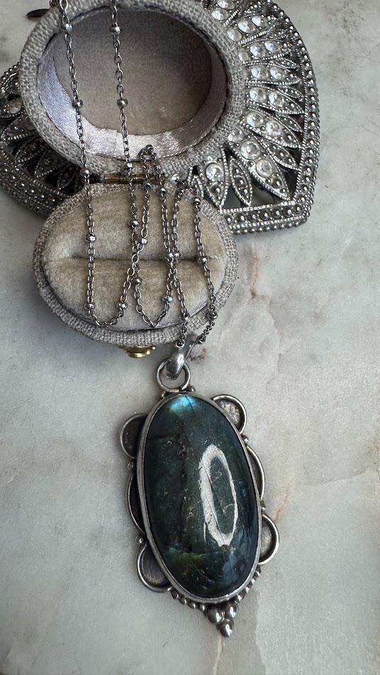 Sterling .925 Labradorite Center StoneBeaded Chain 18 length15.28 gramsVintage Pre-ownedCondition excellent with minor surface wearBox shown not included, Beautifully packaged with 100 recycled materials