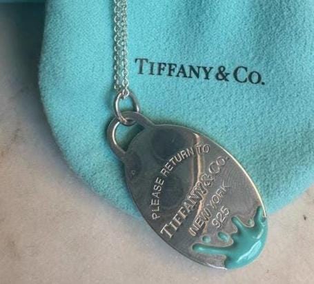 Sterling .925 Tiffany Enamel PendantCable link chain 24inSpring ring clasp13.88 gramsCondition NewOriginal Tiffany box & pouch