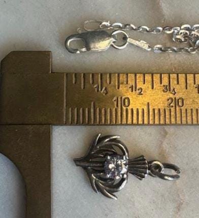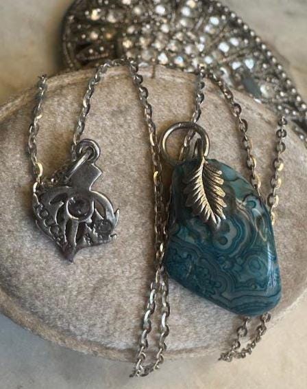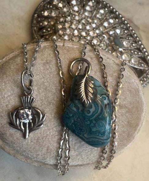 Sterling .925CZ & Turquoise like Stone Two pendantsOne Chain link 16inLobster claw clasp6 gramsVintage Pre-owned Condition good with minor surface wearBox shown not included, Beautifully packaged with 100% recycled material