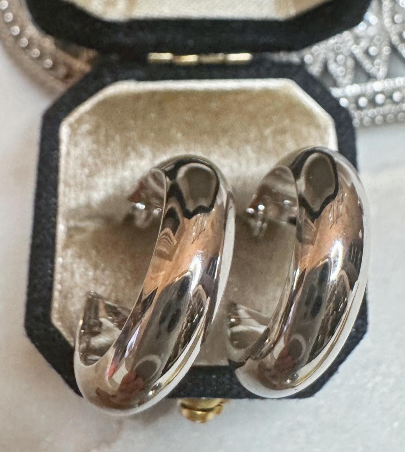 10 Kt White Gold Hoops Latch clasp1.43 gramsCondition Excellent- New Designer Retailer