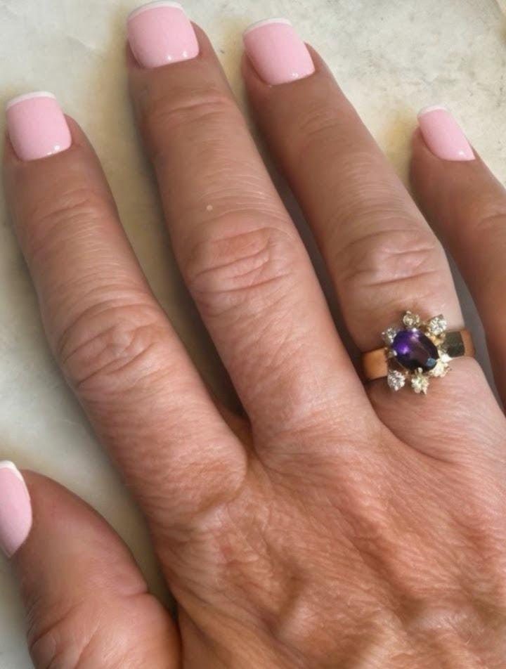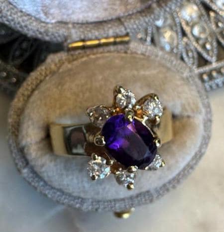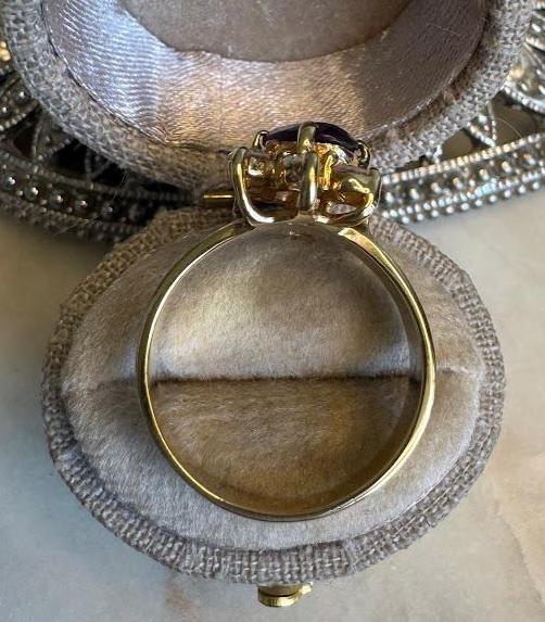 14 kt Yellow Gold Amethyst .65 caratDiamond Accents .66 carats VS2 clarity G/H colorSize 64.34 gramsVintage Pre-ownedCondition good with minor surface scratchesBox shown not included, Beautifully packaged with 100% recycled material