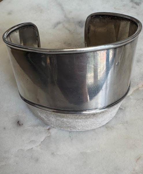 Sterling .925Adjustable width 2.5 in29 gramsPre-owned Condition Excellent with minor surface wear, Beautifully packaged with 100% recycled material