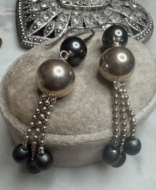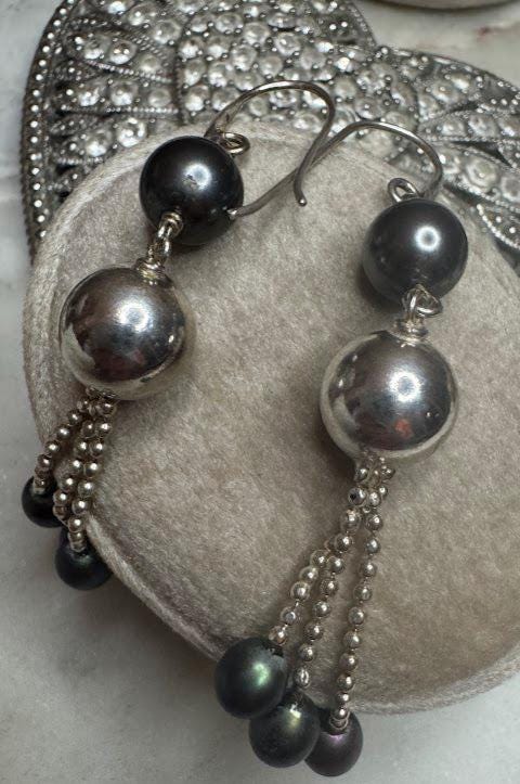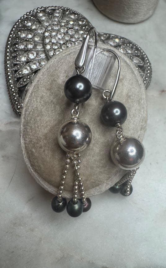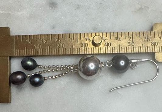 Sterling .925Black & Tahitian PearlsFish hook pierce8.61 gramsPre-owned Condition Excellent with minor surface wear, Beautifully packaged with 100% recycled material