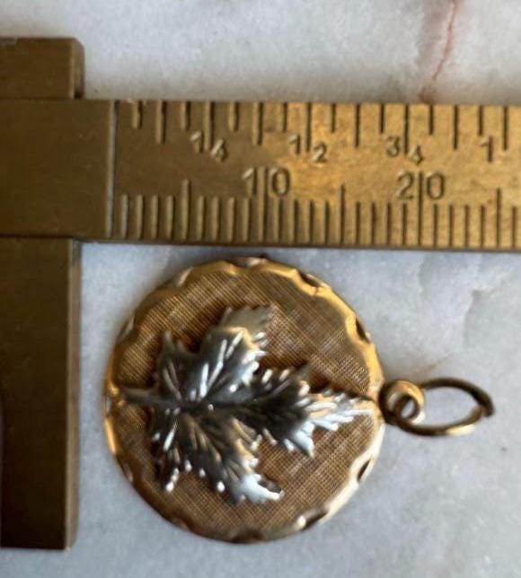 14 kt yellow & white gold Maple Leaf Charm3.22 gramsVintage Pre-ownedCondition Good with minor surface wearOriginal jump ring includedBox shown not included, Beautifully packaged with 100% recycled materials