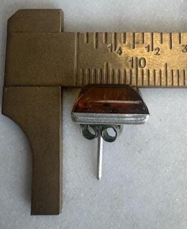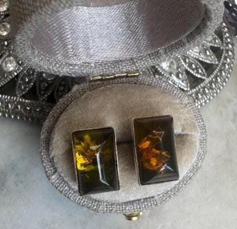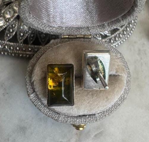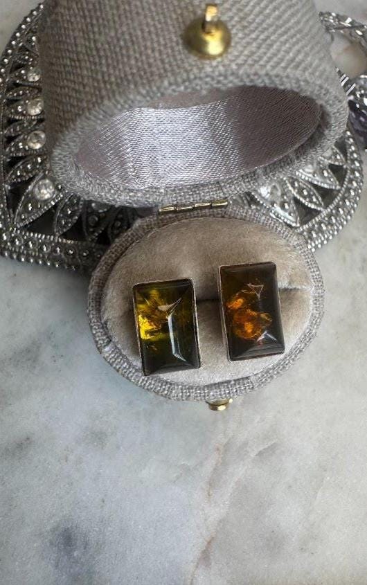 Sterling .925Amber Center StonePost pierced earring3 gramsVintage, Pre-ownedCondition good with minor surface wearBox shown not included, Beautifully packaged with 100% recycled material