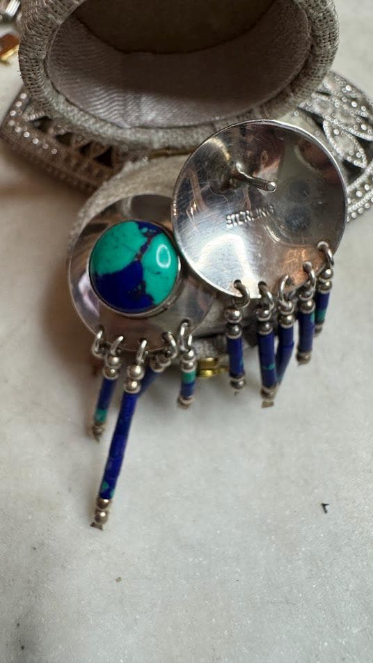 Sterling .925Azurite StonesPost pierced earring6.19 gramsCondition good with minor surface wearBox shown not included, Beautifully packaged with 100% recycled material