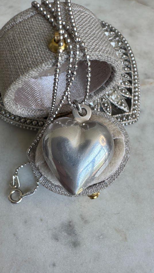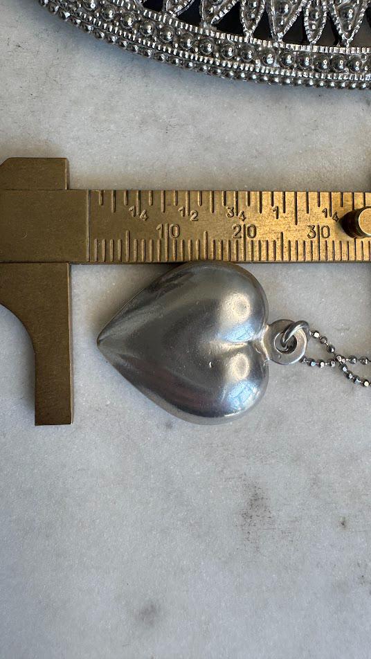Sterling.925Polished Heart PendantBeaded chain 16in NEW5.91 gramsVintage Pre-ownedCondition good with minor surface wearBeautifully packaged with 100% recycled material