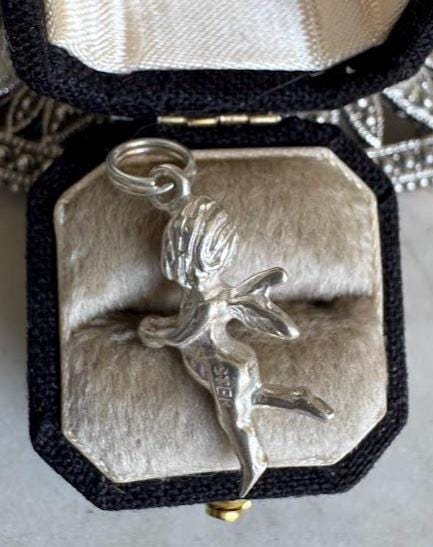 Sterling .925Cherub Cupid's Arrow Charm Pendant3.48 gramVintage, pre-ownedCondition excellent with minor surface wearBox shown not included, Beautifully packaged with 100% recycled material
