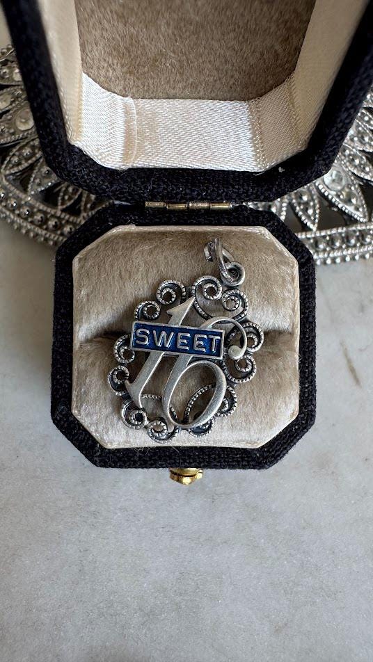 Sterling .925Sweet 16 Charm Pendant1.33 gramVintage, pre-ownedCondition excellent with minor surface wearBox shown not included, Beautifully packaged with 100% recycled material