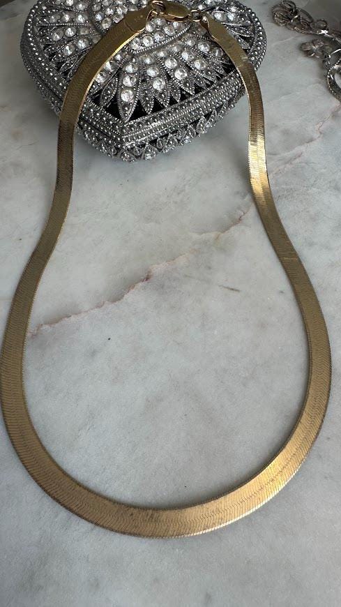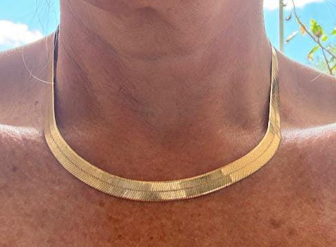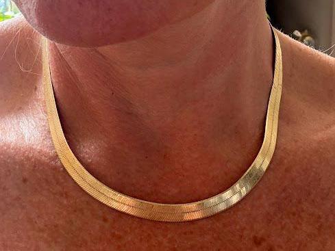 Yellow Gold 14KT 6mm Herringbone Chain Lobster Claw Clasp 15in length chain12 gramsCondition Like NewNicely packaged with 100% recycled material