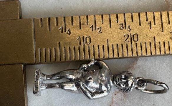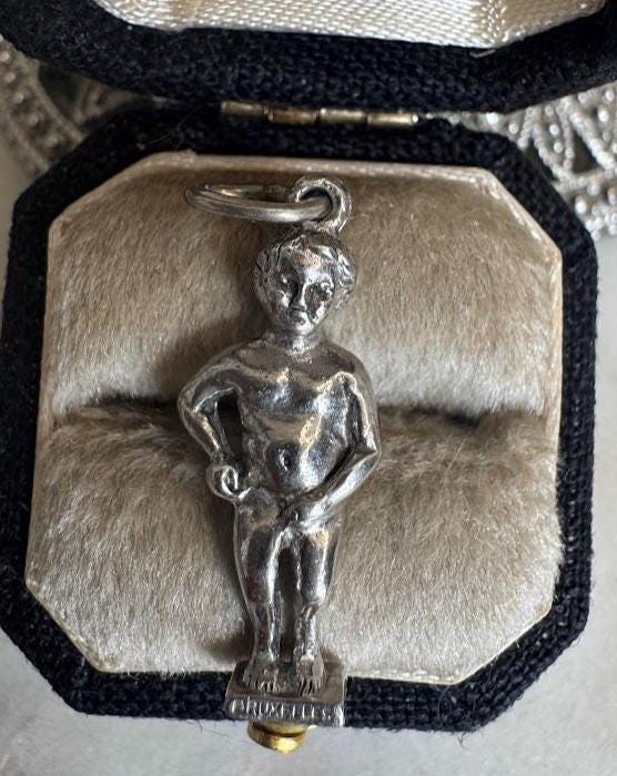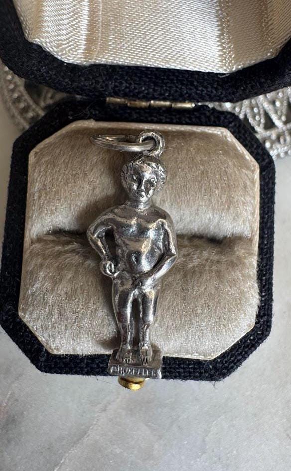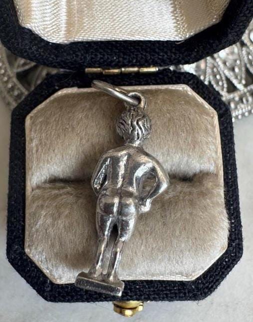Sterling .925Brussell's Manneken Pis (Naked Man) Charm1.5 gramsRhodium platedVintage Pre-ownedCondition excellent with minor surface wearBox shown not included, Nicely packaged with 100% recycled material
