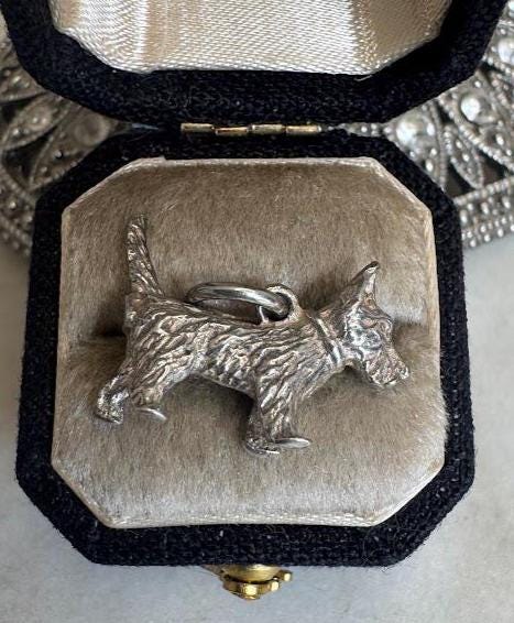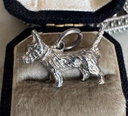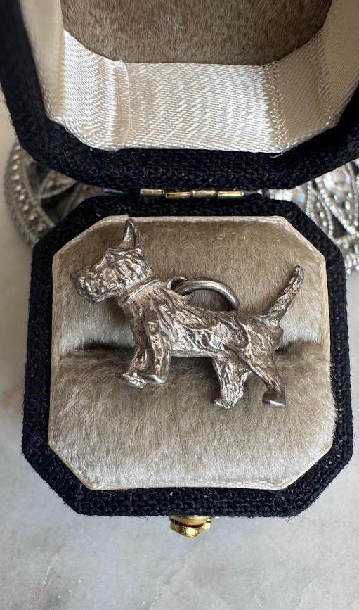 Sterling .925Dog Scottish Terrier Charm Pendant2.50 gramsVintage Pre-ownedCondition excellent with minor surface wearBox shown not included, Nicely packaged with 100% recycled material
