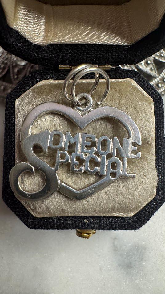 Sterling .925Someone Special Charm2.04 gramsVintage Pre-ownedCondition good with minor surface wearBox shown not included, Nicely packaged with 100% recycled material