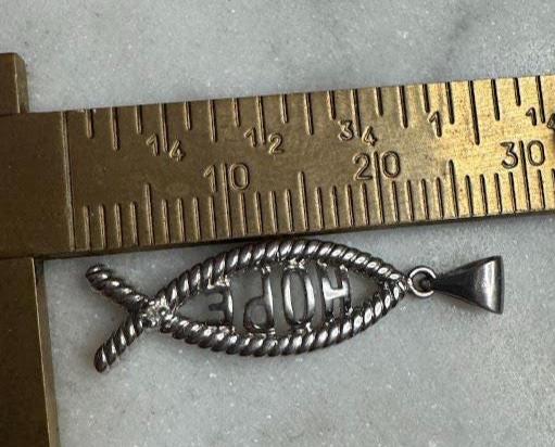 Sterling .925Hope Fish Symbol Charm1.23 gramsVintage Pre-ownedCondition good with minor surface wearBox shown not included, Nicely packaged with 100% recycled material