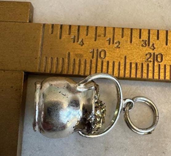 Sterling silver .925Pot of Gold Charm3.74 gramsVintage Pre-ownedCondition good with minor surface wearBox shown not included, Nicely packaged with 100% recycled material