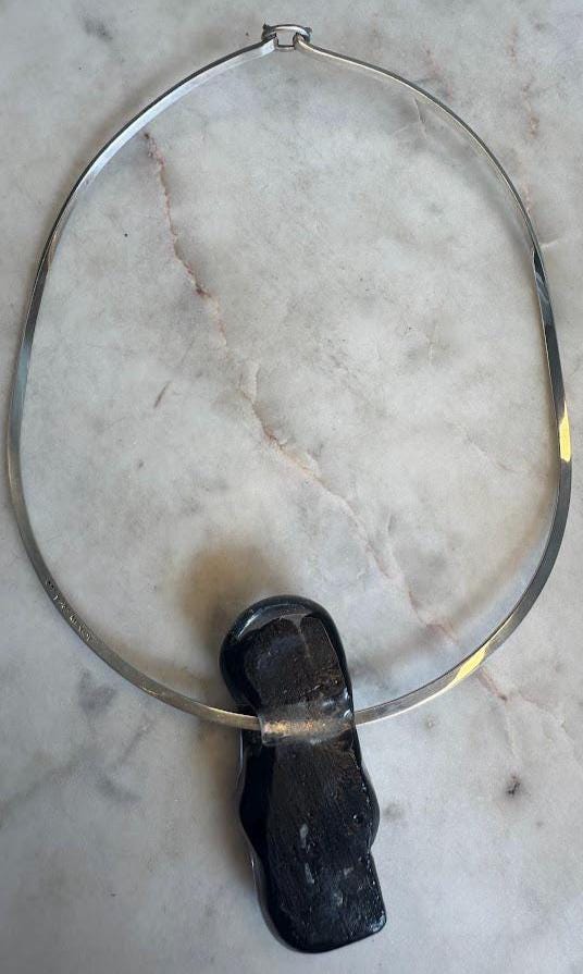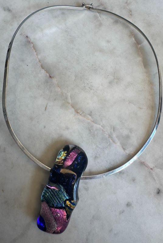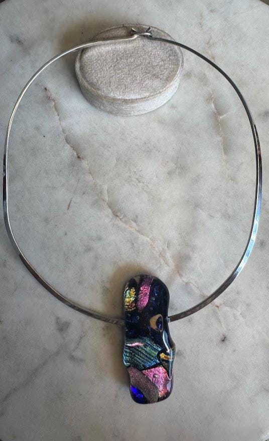Mexican Silver Wire Necklace with Glass Colorful Pendant