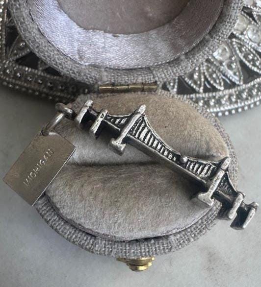 Sterling .925 Mackinaw Bridge Charm2.62 gramsVintage Pre-ownedCondition good with minor surface wearDesigner Tag Sterling by Bell- MichiganBox shown not included, Nicely packaged with 100% recycled material