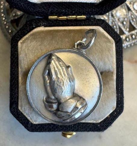 Sterling .925Prayer Hands Charm "Serenity Prayer"5.09 gramsVintage Pre-ownedCondition excellent with minor surface wearBox shown not included, Nicely packaged with 100% recycled material